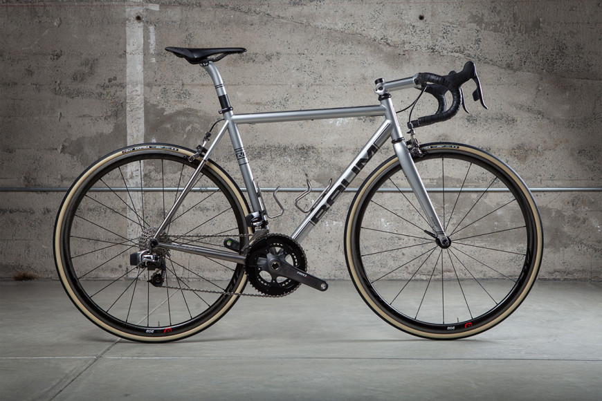 Sausalito’s premier bicycle shop, Above Category, teamed up with a few of their custom frame suppliers to build three bikes specifically for the new wireless group — one of them being this quicksilver titanium frame by Australia’s own Baum Cycles.