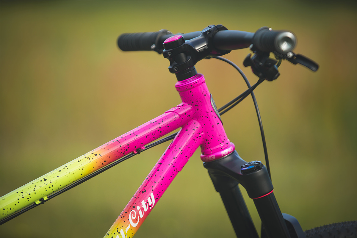 He thought his collection was complete until All-City released the Electric Queen with its neon fade and black splatter paint work. Needless to say, he was smitten, and placed a personal order for himself. He built it up to his specification as soon as it landed.