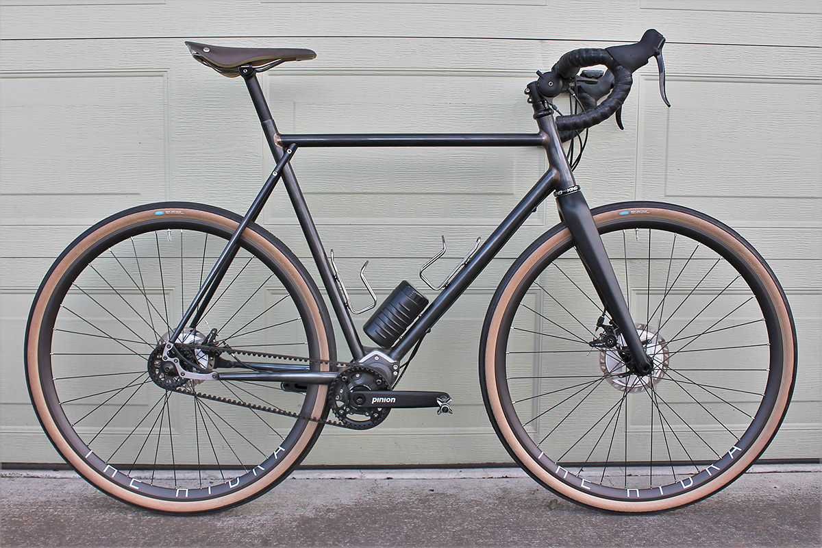 “I’m a little surprised how well it all worked out,” he admits. “Two weeks of riding plus a century in California, and nothing has budged or made a sound.” Meant to be ridden in fair weather, the chromoly steel is gun blue finished, as this interface is not very conducive to paint.