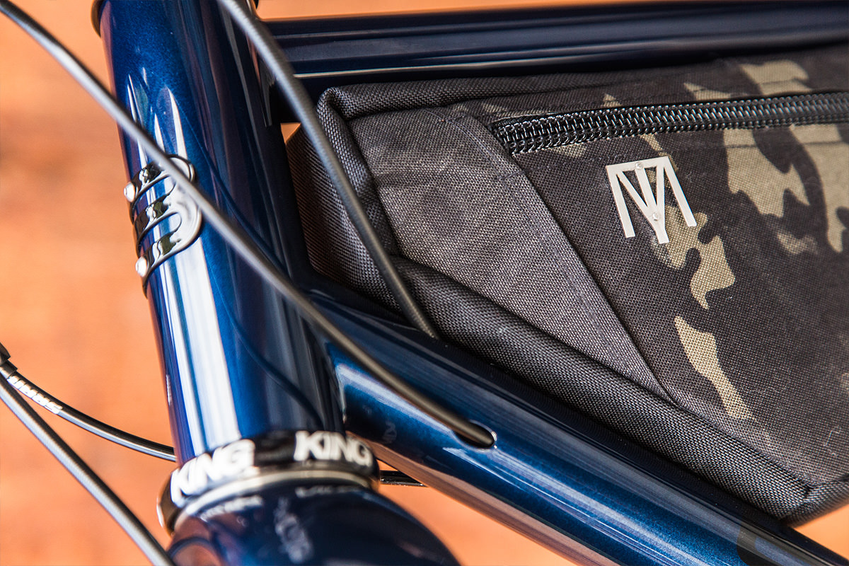 Riding for more than five hours, or in remote areas, means bringing supplies. The owner wasn’t keen on buying ready-made bikepacking bags because of the fact that the shape won’t closely follow the frame; the straps will rub the paint and break the clean look of the bike.