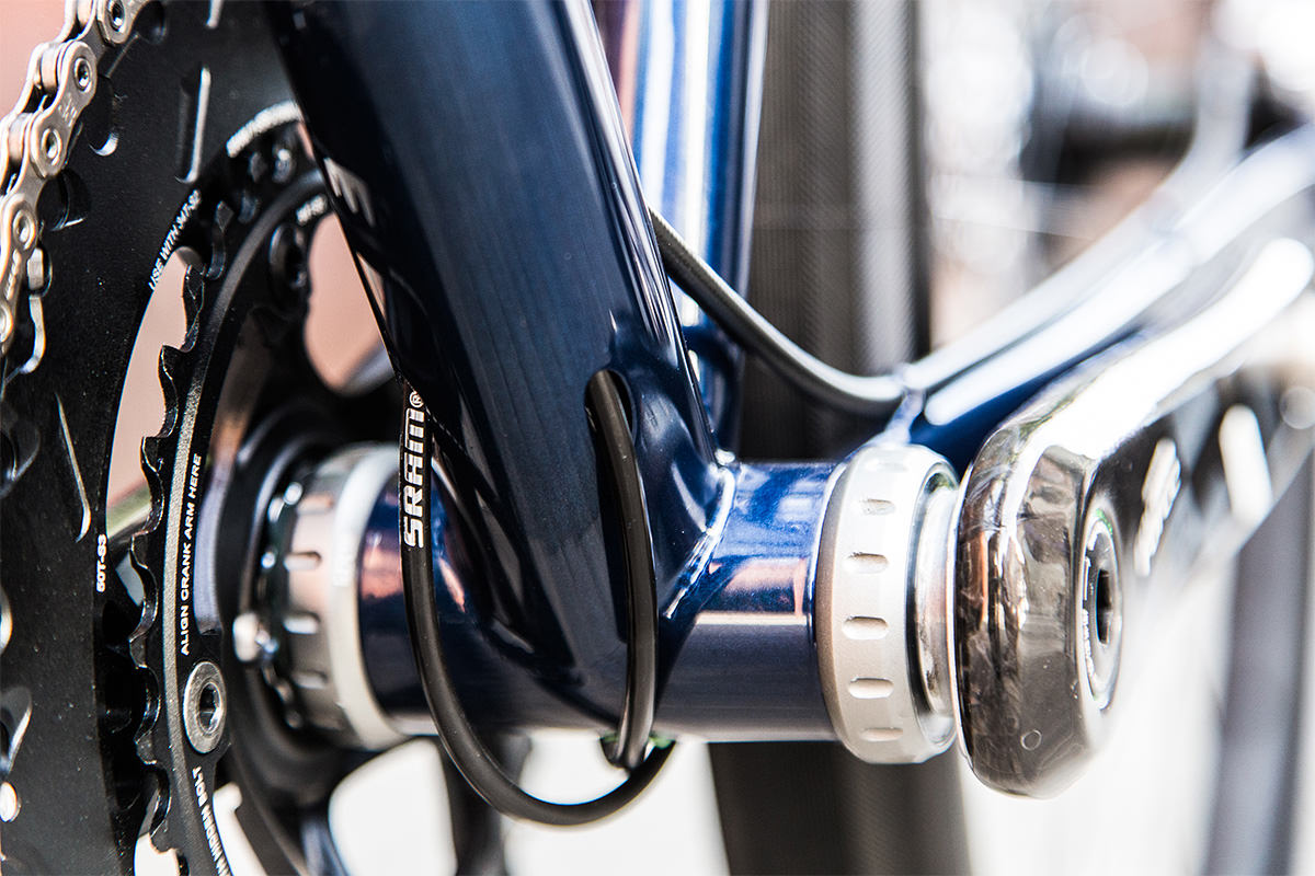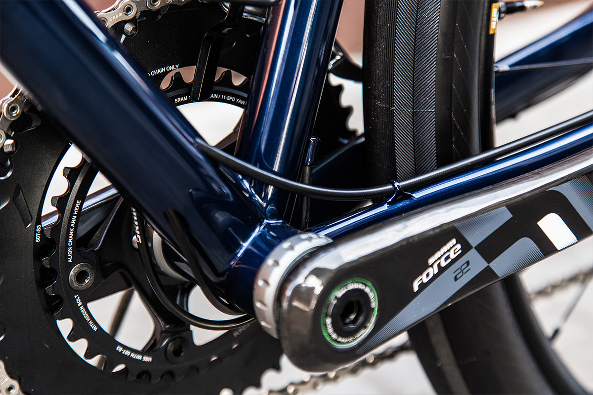 The frame has triple internal cable routing, with stainless steel tubes guiding each cable housing in the down tube, and are internally reinforced, keeping the tubes sealed to water and dirt.