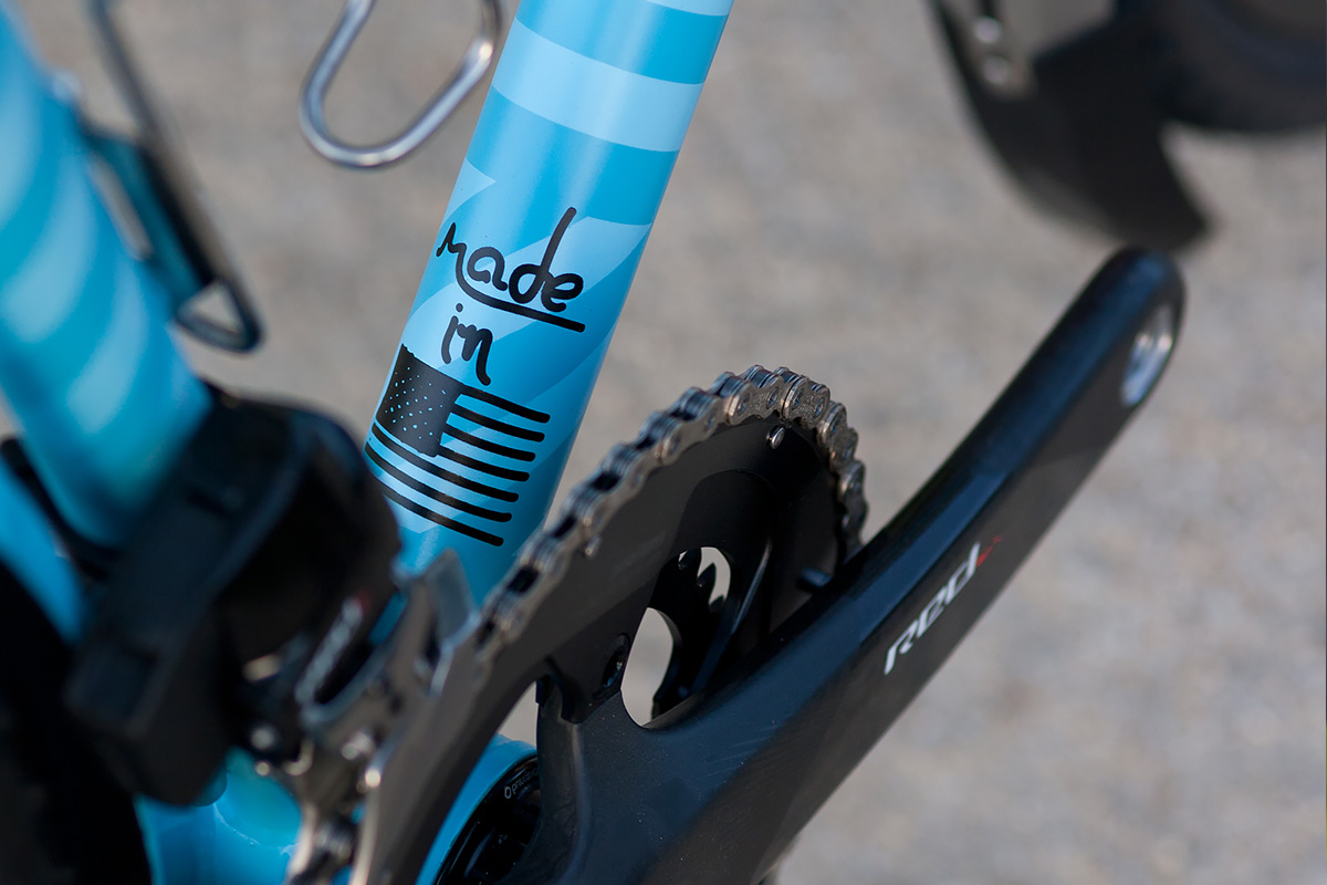 Even the Ritchey logo was redrawn, along with Franco’s logo, represented on the fork leg. Their country of their frames origin is also inscribed on the down tube. All Franco frames are made from US steel in Portland, Oregon.