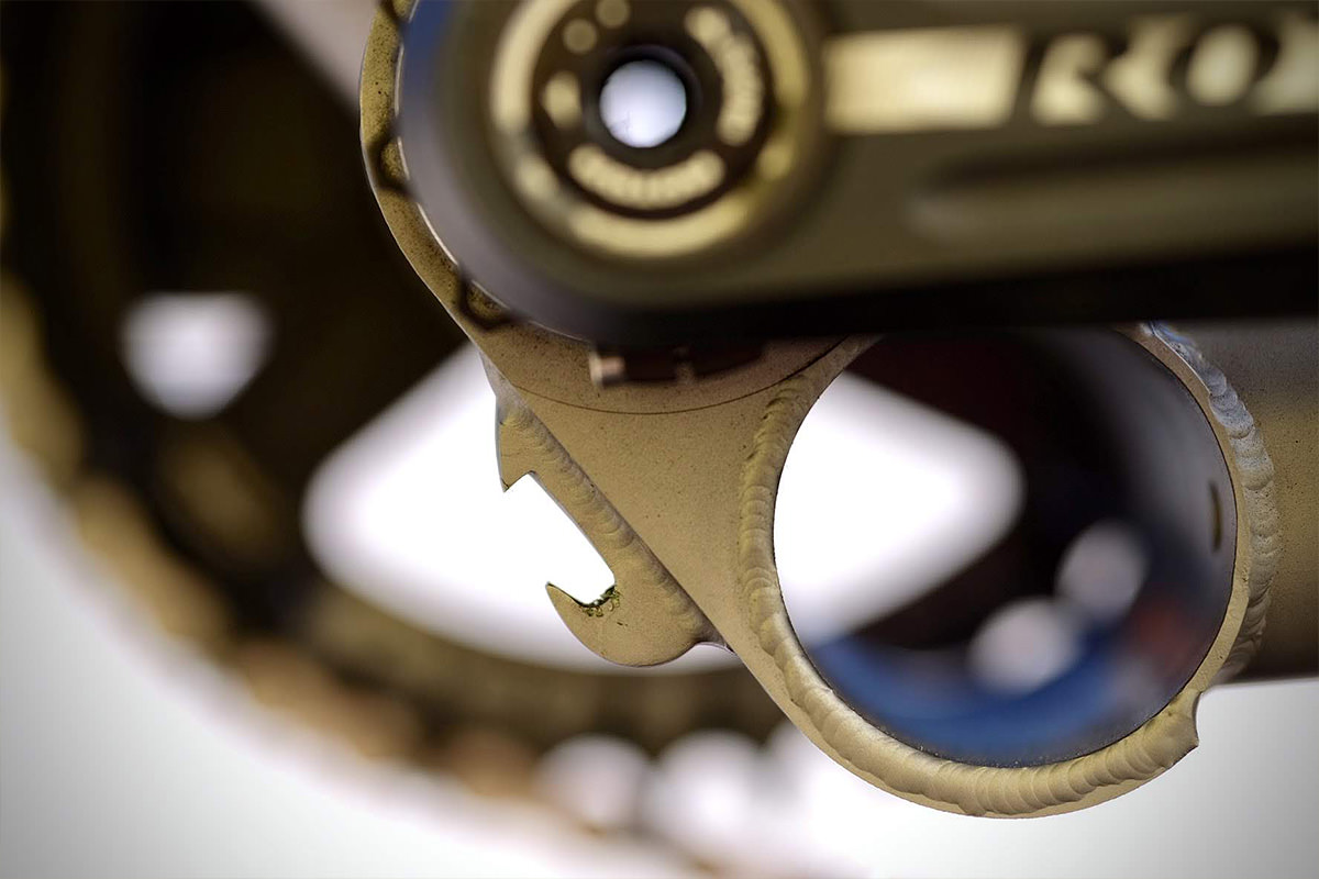 Including the Super Boost Plus standard, the bottom bracket ends up with an effective width of 104.5mm, which will also add to the general stability — especially after 60kms of descent. Nevermind, the guys thoughtfully welded a bottle opener under the bottom bracket for refreshments.