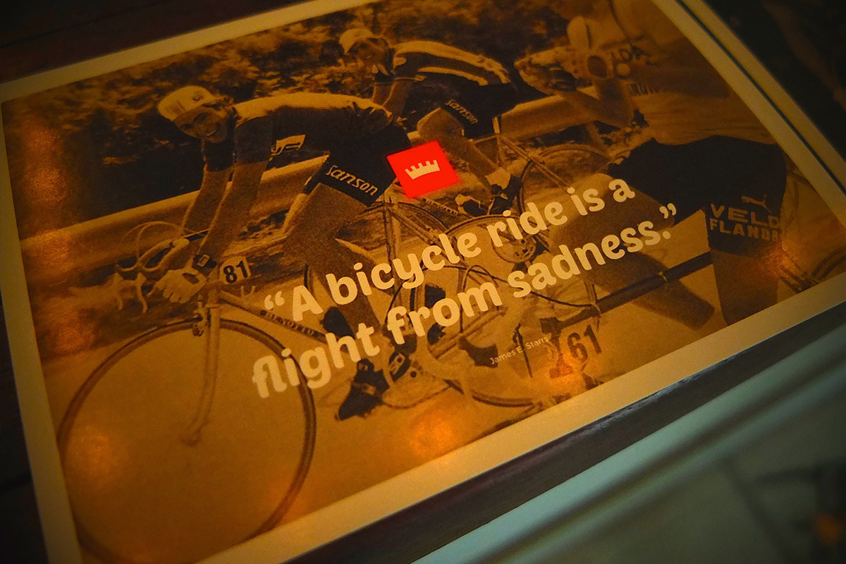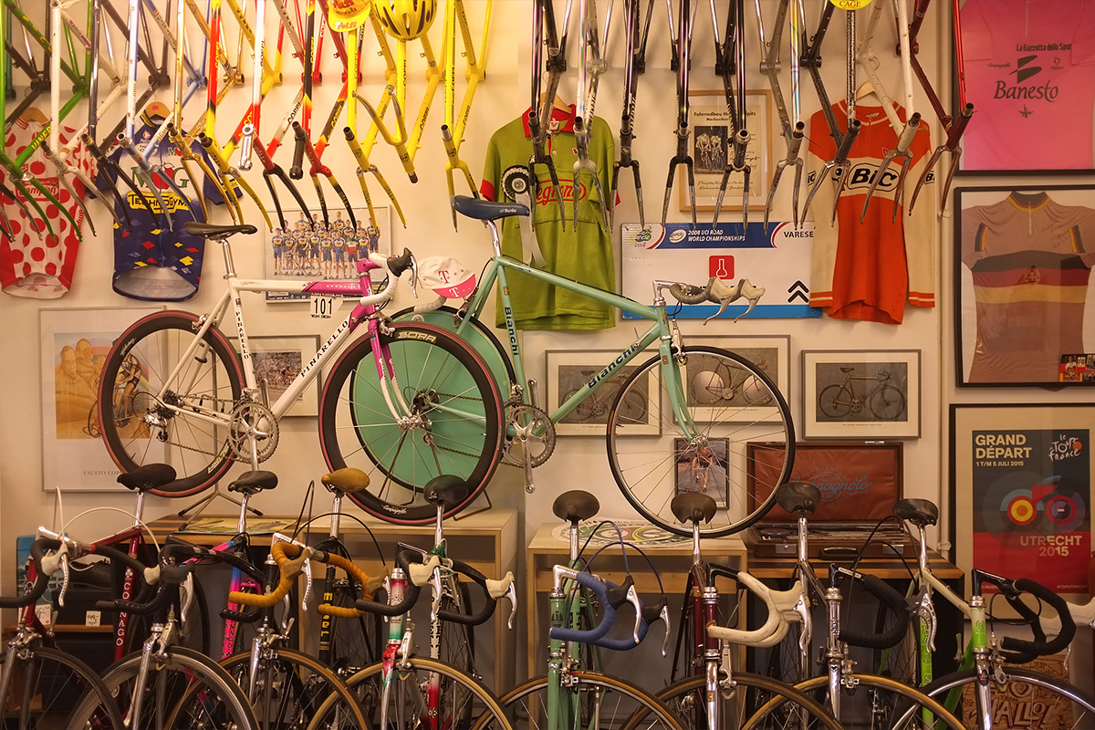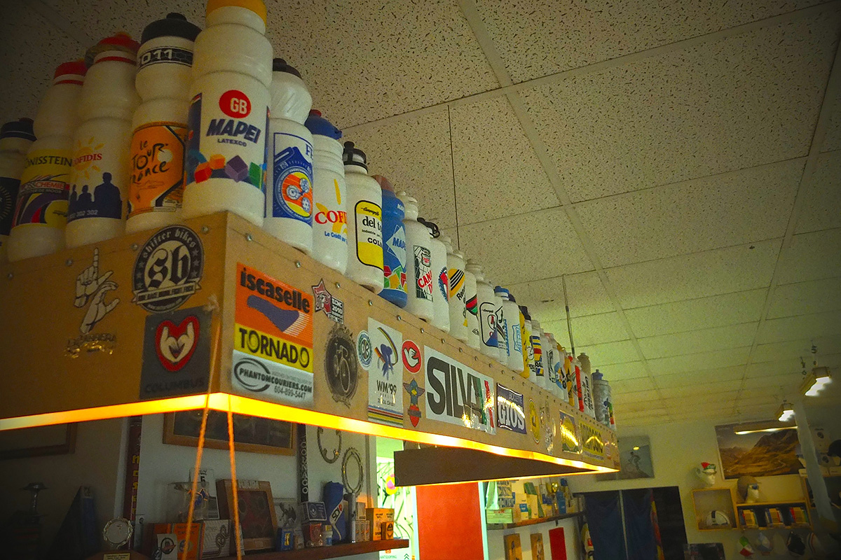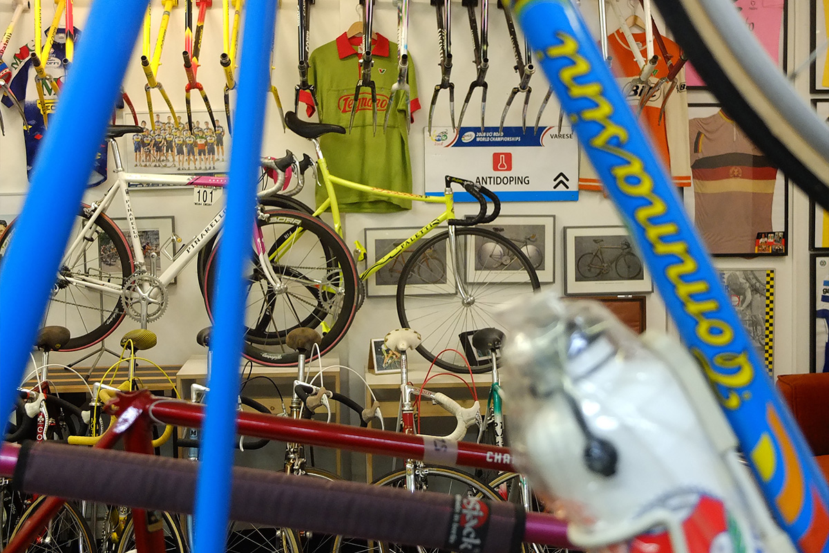 “Needless to say the store also carries lights, pedal straps, water bottles, and lots of stuff you would expect to find in a racing shop, plus a seemingly endless collection of books, photos, art, knick-knacks, and souvenirs from great races gone by.