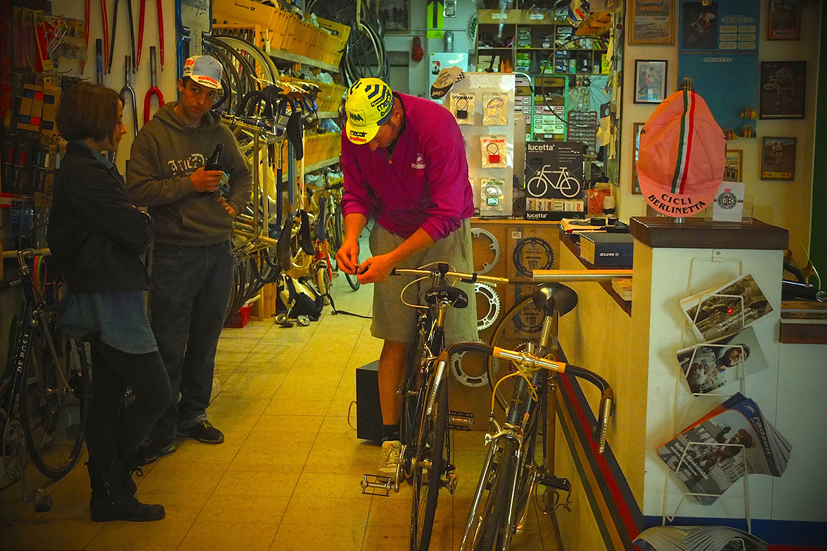 Tucked away in the Prenzlauer Berg district of Berlin is a shop called Cicli Berlinetta, and it’s more of a temple to the racing bicycle than a shop. It’s Bregan Koenigseker’s local shop and he dropped in to take some photos for the readers of The Spoken.