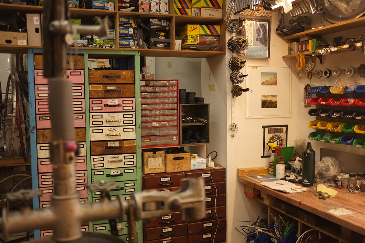 “Dustin is a virtual encyclopedia on the subject, and his shop is often visited by former pros whose bikes can be seen lining the walls.