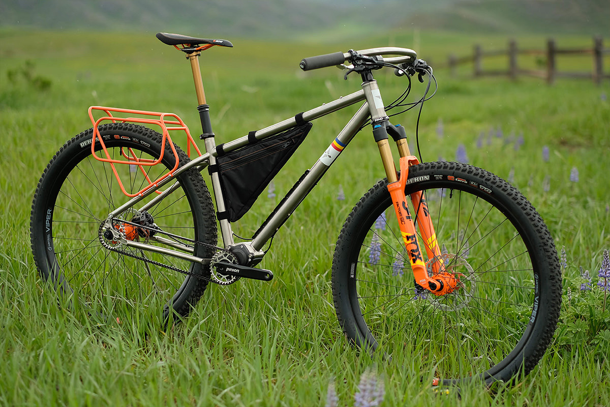 A Pinion gearbox and Gates belt combination result in a reliable and clean drivetrain — and a bike I’d love to take for a ramble through the Colorado ranges. Head to the Corvid Cycles website to see his other frames.