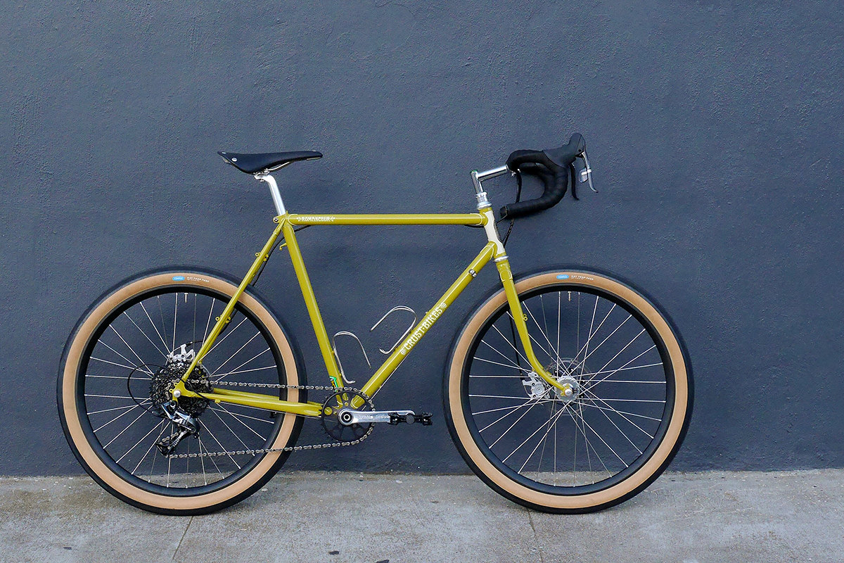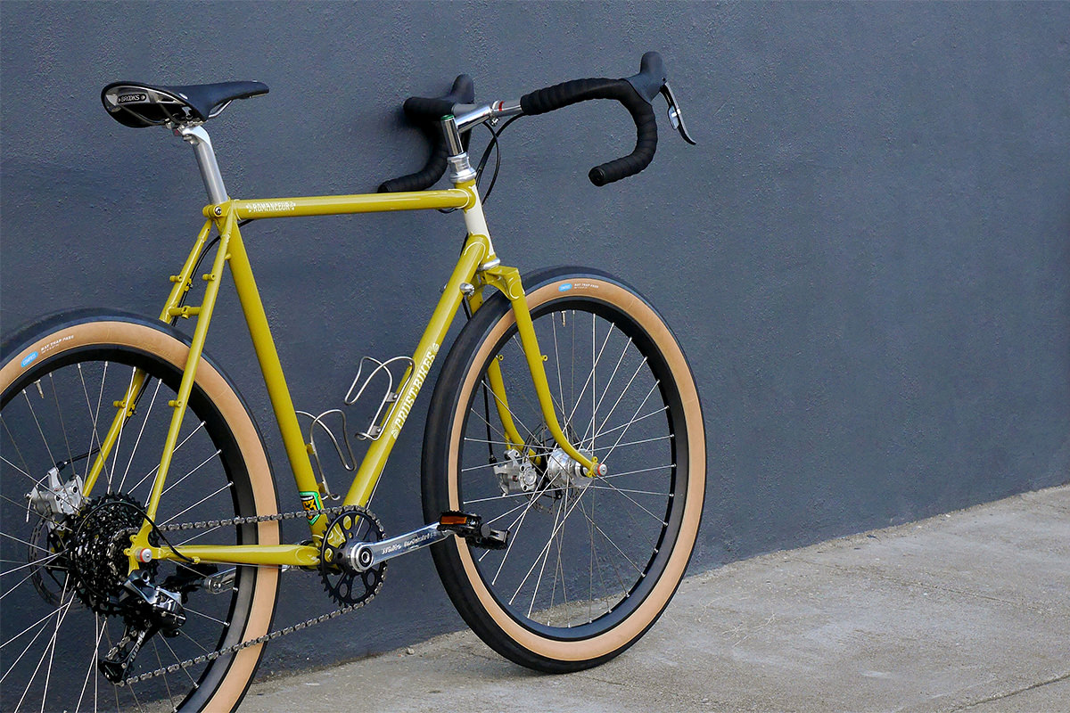 That’s exactly the type of riding the Crust Romanceür was designed to do. The frames and low-trail forks are brass-brazed Reynolds 853 tubing with beautifully ornate lugs and designed for small-diameter, high-volume tires. Romance + rideability = the Romanceür.
