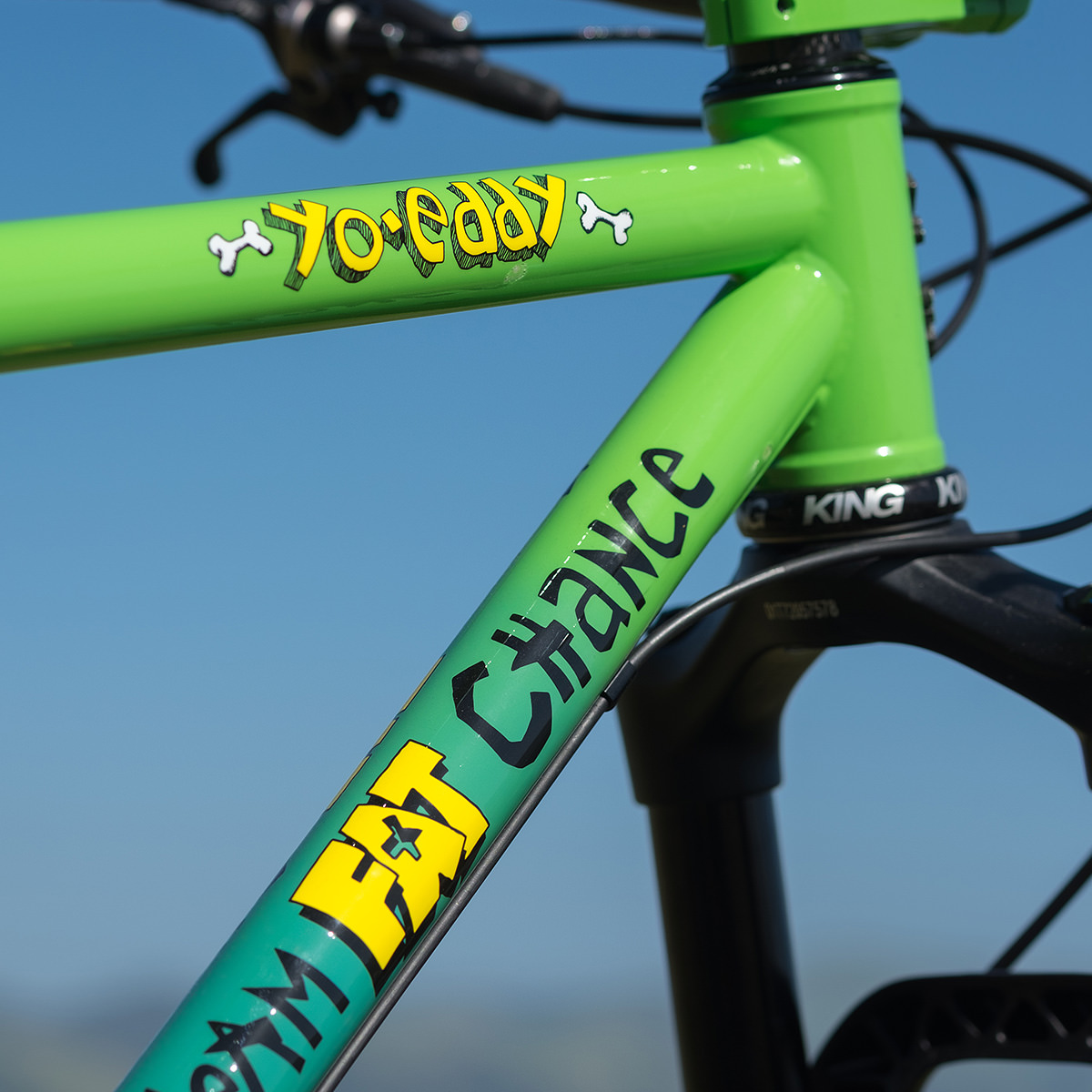 An oversized 44mm head tube sits up front, mounted by the iconic Yo Eddy’ head badge. Again, your chosen stem can be painted to match the frame.