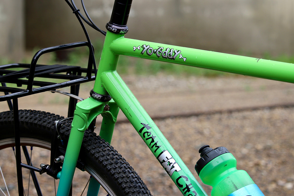 The Pacenti-crowned fork was actually made by Bryan Hollingsworth of Royal H Cycles, which Jeff had repainted to match the frame, and today it looks like the Yo Eddy! has evolved into a fun and happy machine.