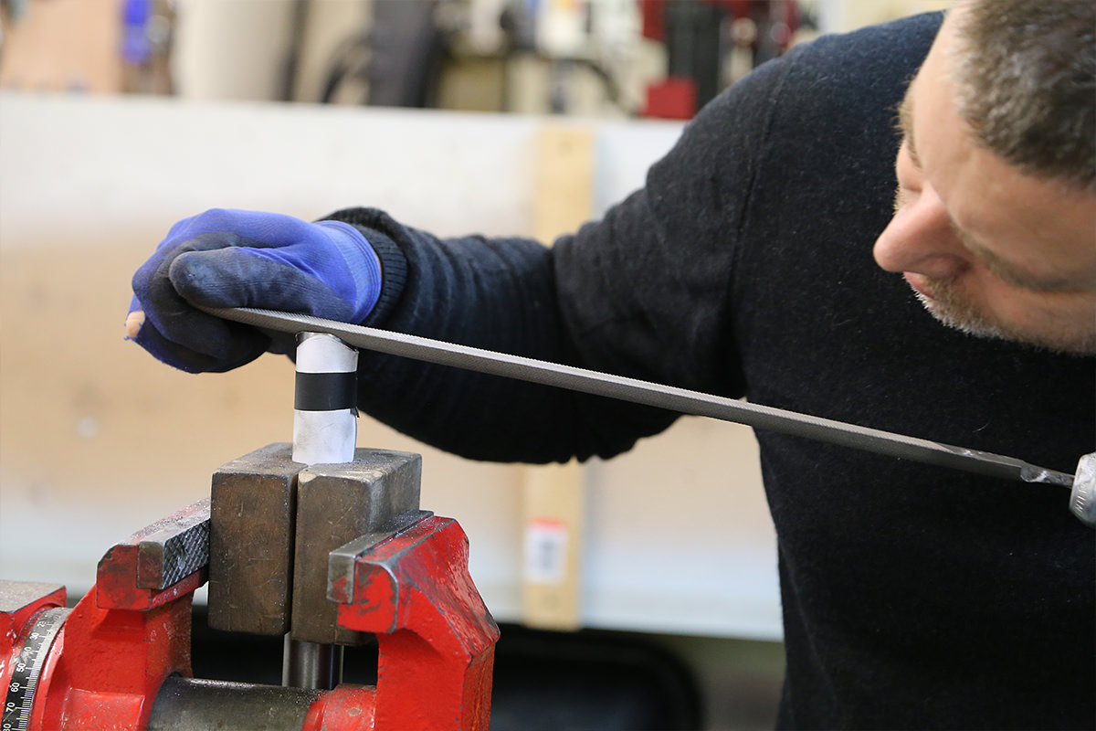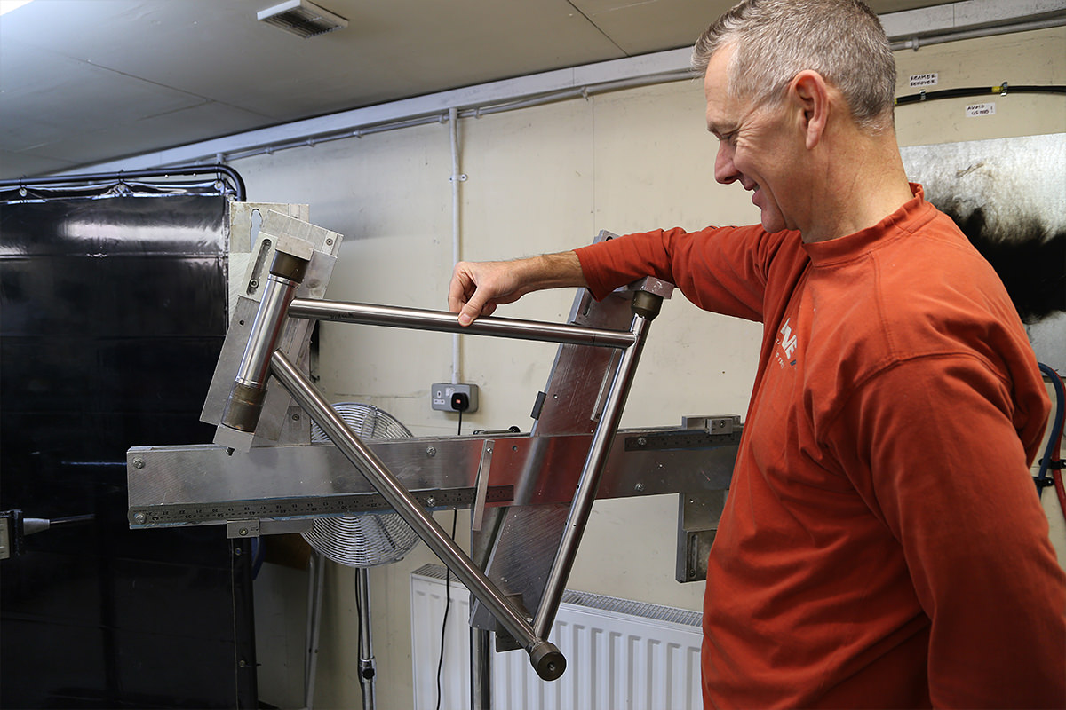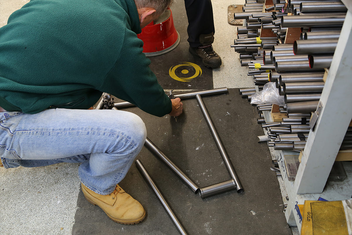 Bryan took us through the different qualities of tubing, from Reynolds to Columbus, describing how diameter and thickness affect the ride, and demonstrated how tough stainless steel was to work with.