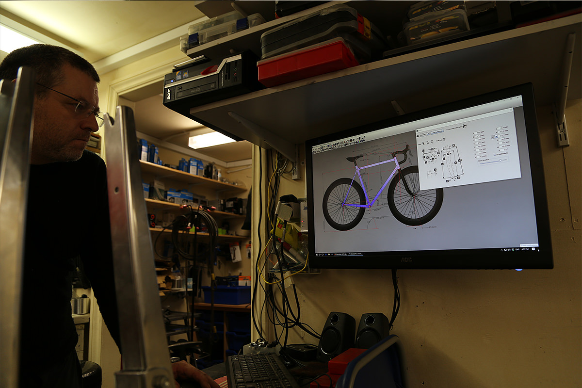 Once we had the essential measurements, we began to log them into the incredibly versatile BikeCAD program. It’s a mind-boggling tool that is extremely valuable to the modern frame builder, enabling us to instantly visualise custom geometry.