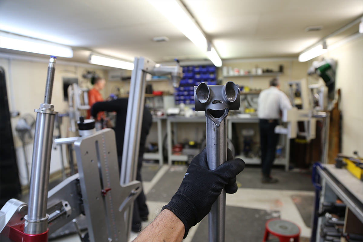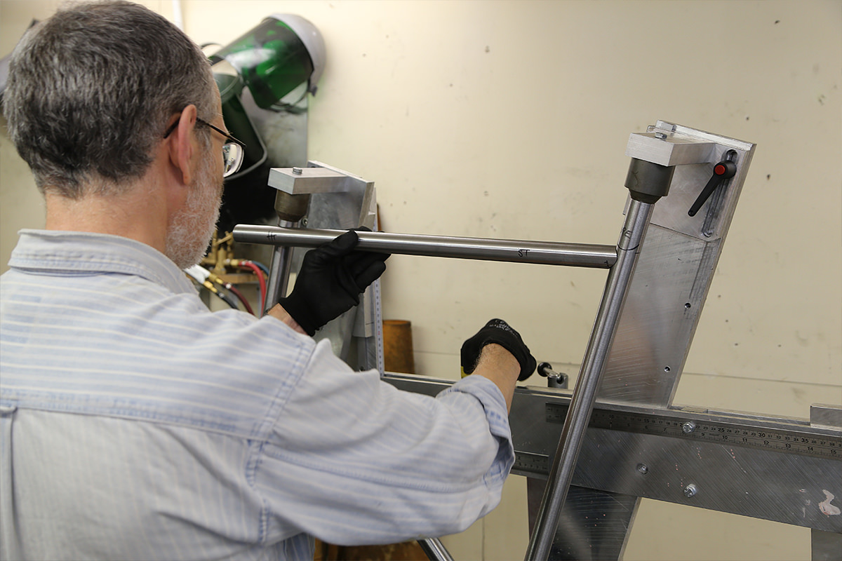 These days, highly evolved jigs can be easily set to fractions of millimeters and are highly adjustable. I quickly gained a deep respect for the engineers at Bicycle Manufacturing, as well as those early pioneers who made do without.