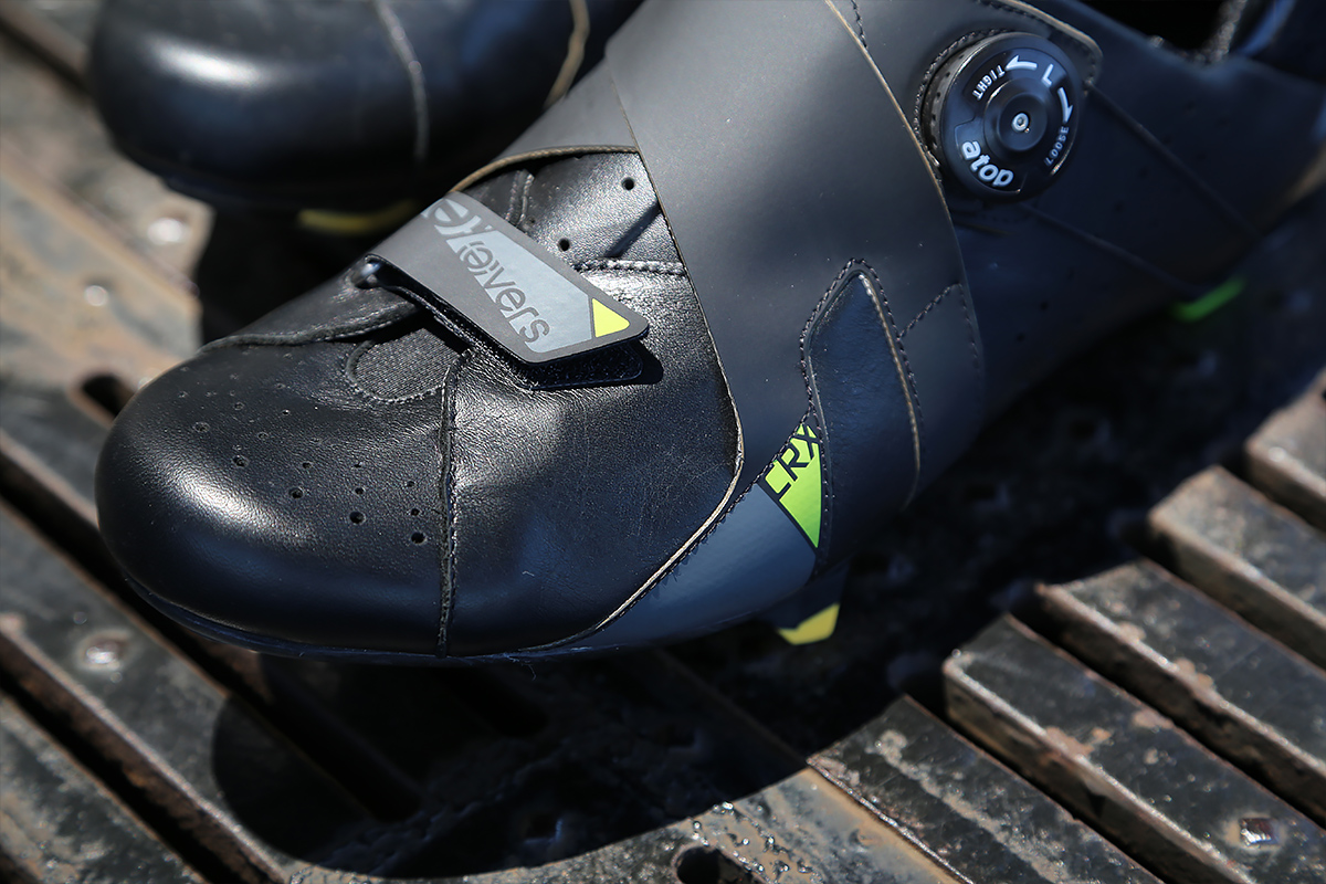 On the bike, the stiffness of the carbon sole is immediately evident and easily matches the likes of Shimano’s top line R320 and R321, as well as the Lake 402s (although Bonts would probably edge them out in feeling stiffer). The toe strap across the front of the shoe is much more effective than I have felt in similar shoe designs before. This is possibly helped by the leather of the shoes being so supple, therefore allowing for more movement and adjustment at this part of the shoe.