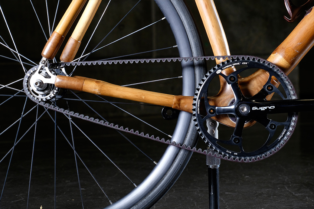 The dust of the 2016 North American Handmade Bicycle Show has settled, and everyone involved is slowly getting back into routine. One of the more interesting bikes from the show was this bamboo Gates belt-driven fixed gear by California’s Calfee Design.