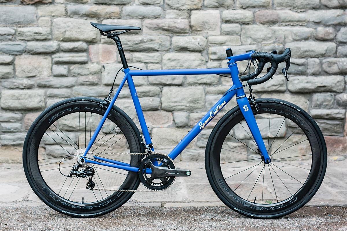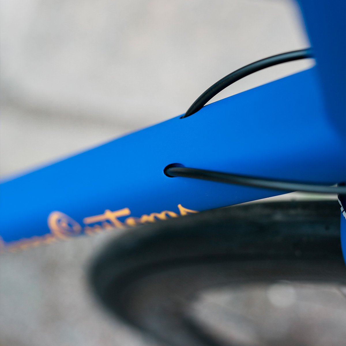 Spoon Customs’ latest customer, Andrew Rumble, asked them to work on a concept that would mimic this blue, for a trip that would see Andrew journey to Col D’Izoard — the climb upon which Spoon developed the original Izoard RR race bike — then over Col Du Bonette (the highest paved mountain pass in Europe) to the Alpes Maritime region and the City of Nice, where much of Yves Klein’s work is proudly displayed.