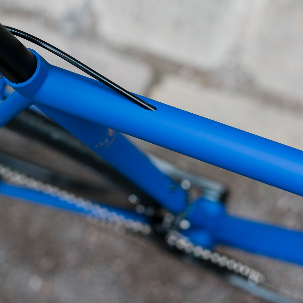 The arresting effect of the original Klein Blue is caused by a combination of pigment and polyvinyl acetate or PVA (basic craft glue) which can’t be used on a bike frame. A 2K Matte binder is available, but it’s not matte enough, reflecting way too much light.
