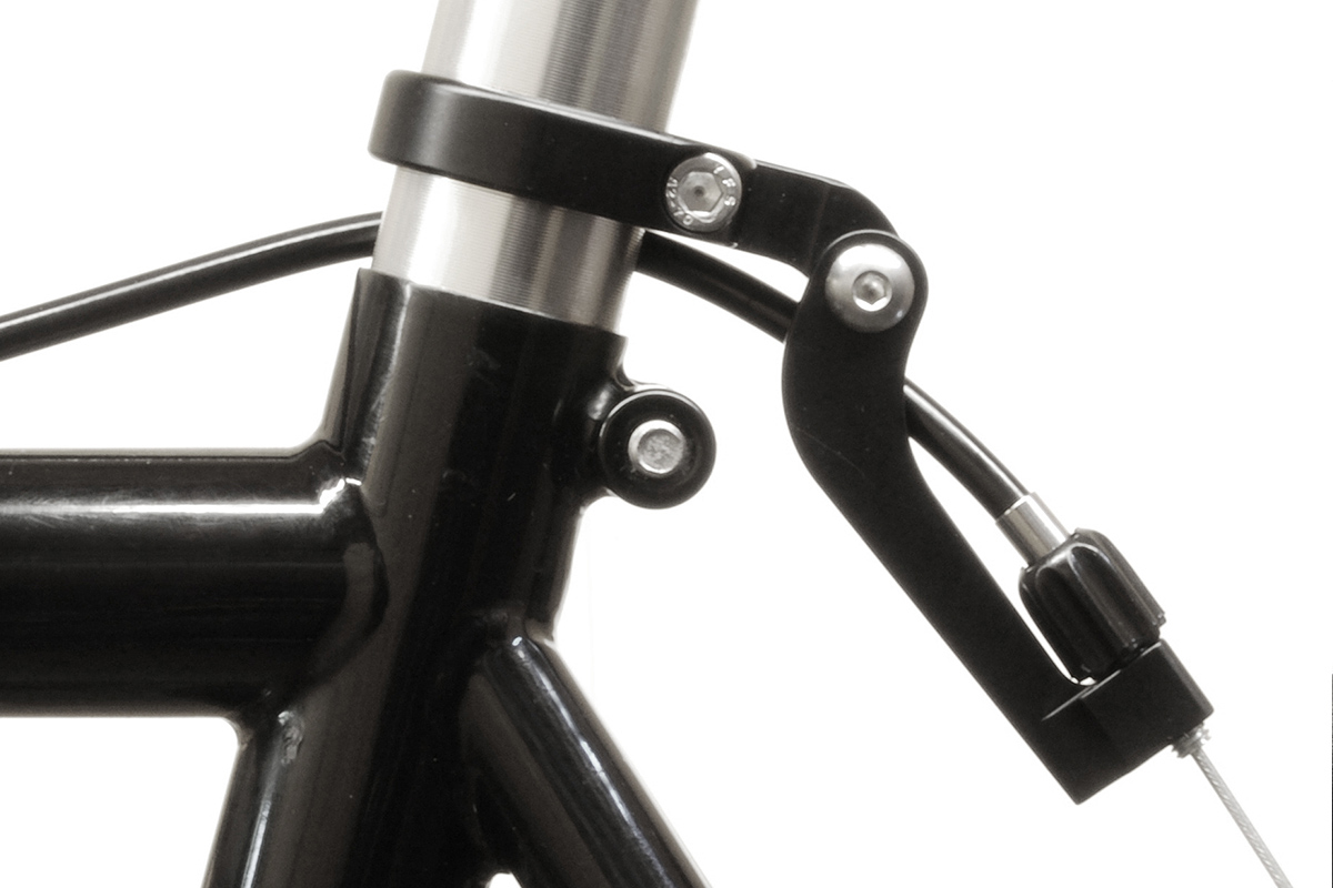 The Funky Monkey is a simple, hanging housing stop for center pull and cantilever brakes. This simple part is brought to a whole new level with our renowned machining prowess. We make a front and a rear version. The front comes in a 1 1/8” and 1” sizes, the rear is 27.2mm and is meant for mounting on a seatpost. The front Funky Monkey features an extra-long arm that drops down to prevent brake cable housing from bending too tightly and binding up. The arm sticks out far enough to clear most headsets. The rear Funky Monkey has a hinged arm to self-align for the proper cable angle. Both front and rear versions have a barrel adjuster to make brake cable adjustments quick and painless.