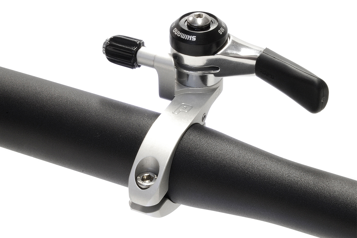 Thumbies have a hinged clamp for an easy installation and fit handlebars with a diameter of 22.2mm or 31.8mm. The 22.2 models fit mountain bike handlebars and the 31.8 mount to the stem clamp area of a drop bar. The clamp is raised up to give clearance for hydraulic brake levers.