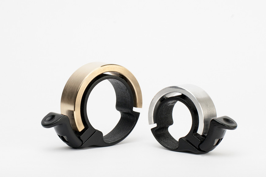The Oi bell is designed not to stick off your handlebars like a blister, and comes in a variety of finishes that range from stealth black, modern titanium and aluminum to classic copper and brass.