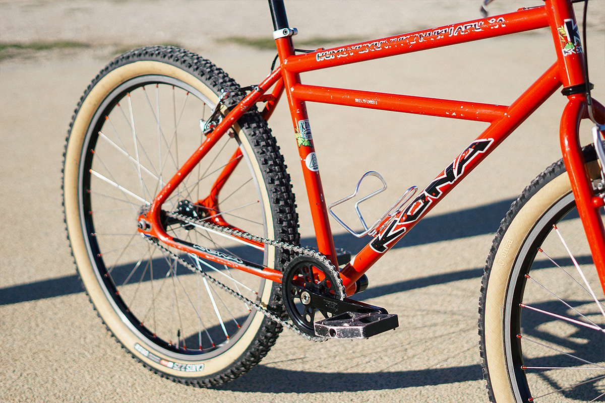 One of Kona’s most beloved models was the rigid steel Humuhumu, first released in 1992. It was basically designed as a pub bike, a blend of BMX and klunker geometries and sensibilities.