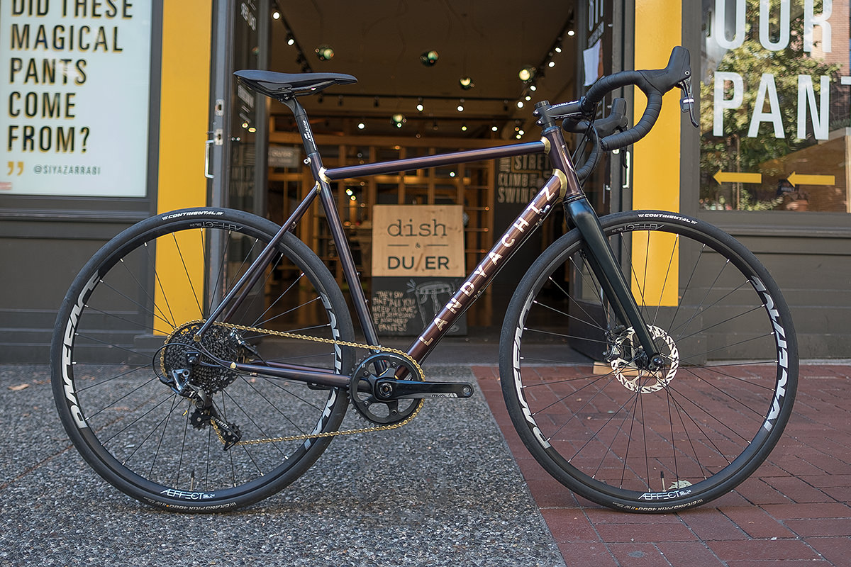 Pascal Weir, sales manager for cycling clothing company Dish & Duer, knew of the frames Landyachtz were making and approached them to build him the ultimate custom commuter that could handle the occasional club ride. Pascal is a Cat 1 cyclist in many disciplines and can be found riding road, XC mountain bikes, and cyclocross.