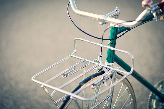 “The main objective was to get a rack that would match a hand-polished and classy vintage look. Pass and Stow in SF helped me out and I had one made to fit with track dropouts on the fork. In Japan the classic commuter bikes are called mamacharis and I wanted to take this concept but make the Cadillac of mamacharis.