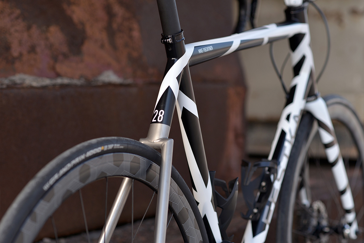 Mike sat down with his good friend Vincent at ALT-254 and, over a few beers, nutted out the paint design. The main focus was showing off the raw titanium, so the rear triangle and the head tube logo was left untouched.