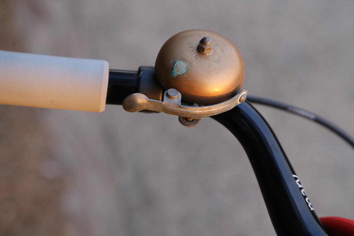 Oury grips used to be my grip of choice, but the subtropical summer heat in Sydney always made them sticky, but the ESI Grips are now my favorite — I’ve got them on all my bikes. The brass bell should be mirror polished, but it still rings true. Amazing what damage a well-placed drop of sweat can do, though.