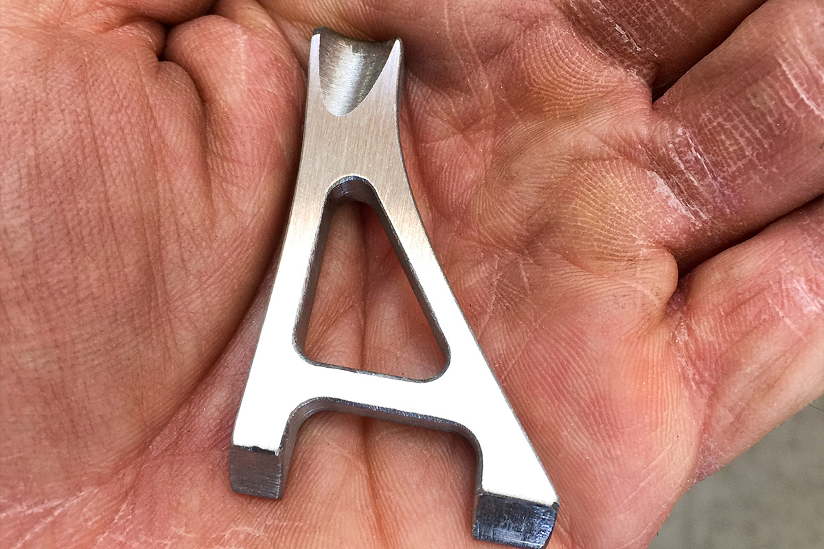 This is the lower post mount. Cut from 1/4″ 4130 plate, I like the shape of this support beam.