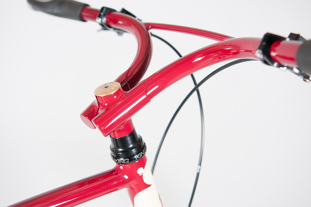 The custom integrated stem and handlebars, forks and bi-laminate frame are a modern interpretation of a classic design. It doesn’t matter what the stats are, Paul’s cruiser just craves to be taken for a ride. It’s a masterpiece from a master builder.