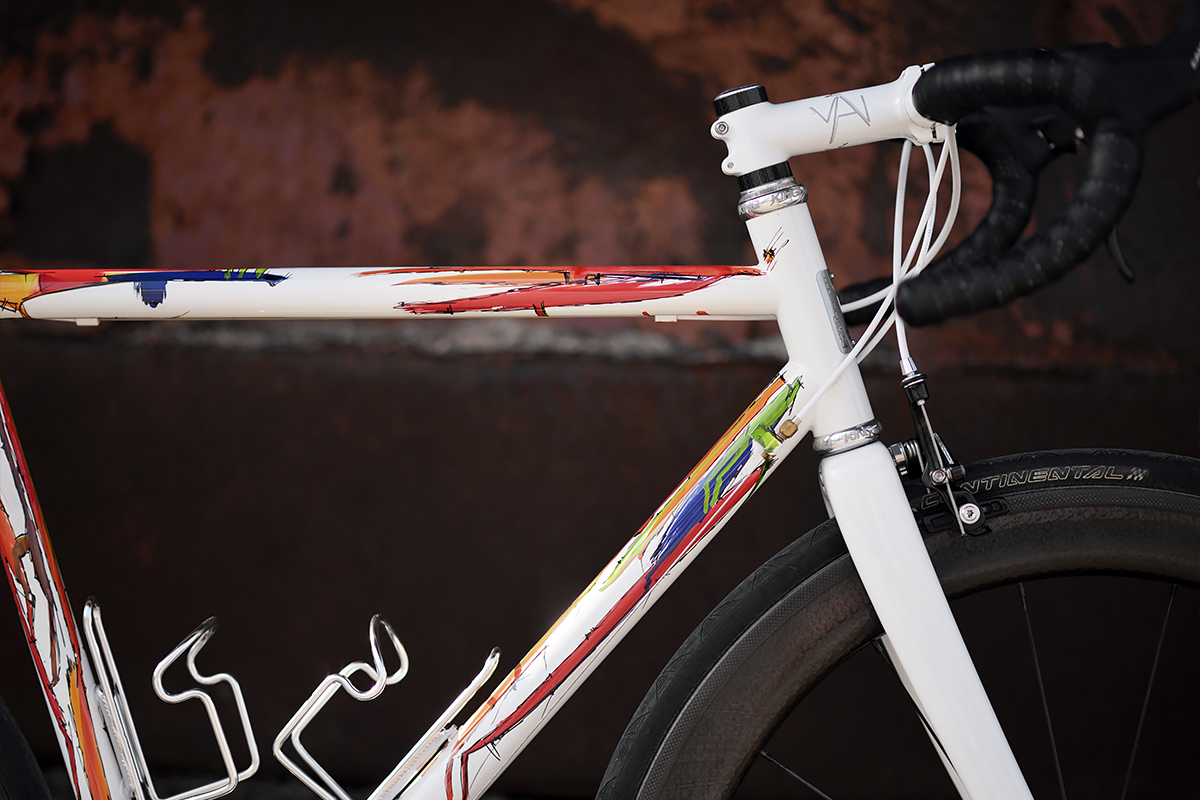 Dario’s paintings might not be to everyone’s taste but that’s ok. There are plenty of less interesting options out there. But none capture the joie de vivre of cycling as passionately, nor the excitement and speed experienced by riding a frame by one of the world’s most colorful frame builders.