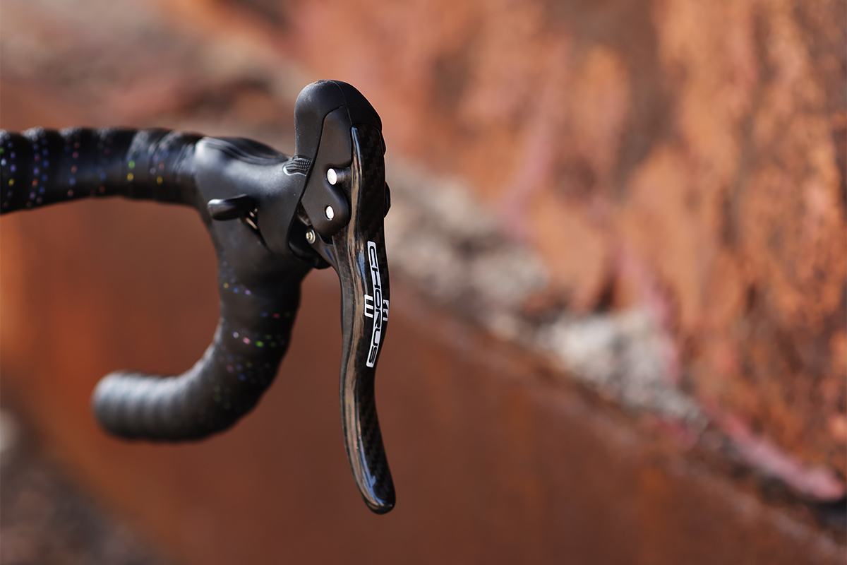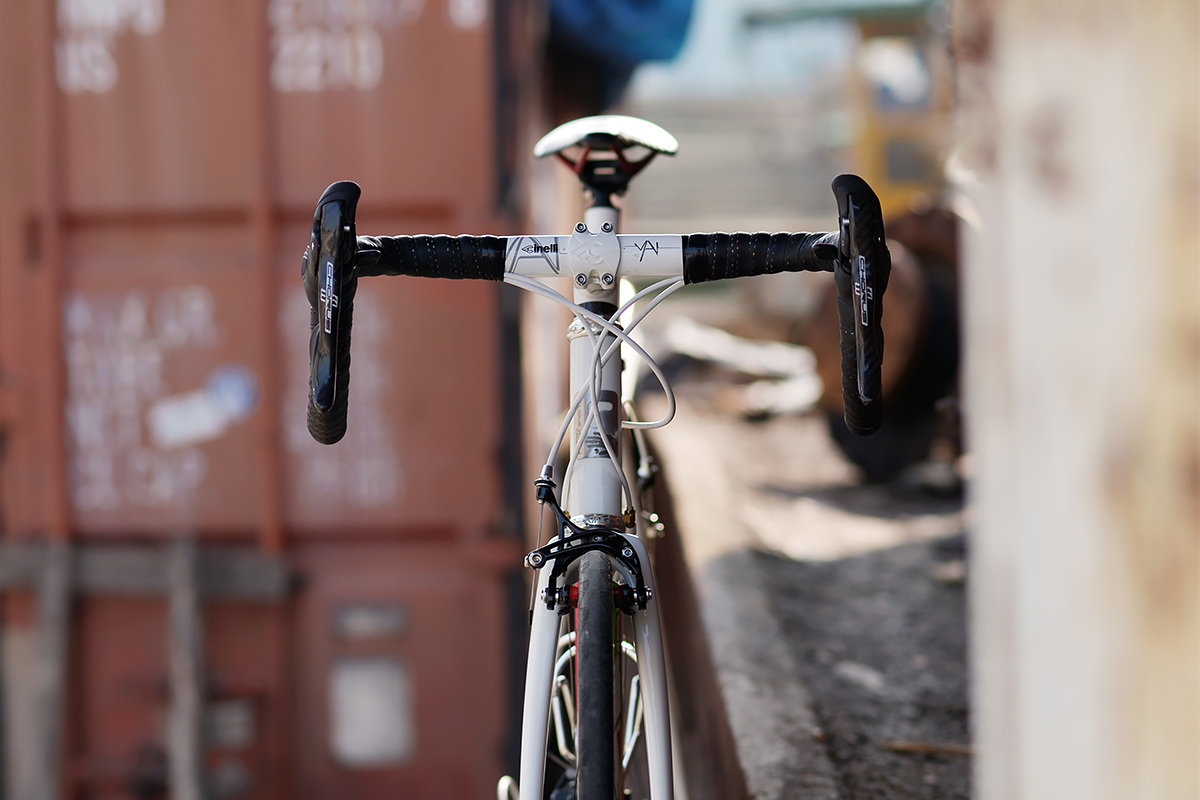 Life Cycle — one of Hong Kong’s premium bicycle stores — built the Responsorium up with a predominantly Italian list of components: A Campagnolo Chorus gruppo, white Cinelli Vai seatpost, stem and handlebars, and a white fi’zi:k Kurve Snake saddle. The Zipp 404 wheelset isn’t Italian but they don’t look out of place at all.