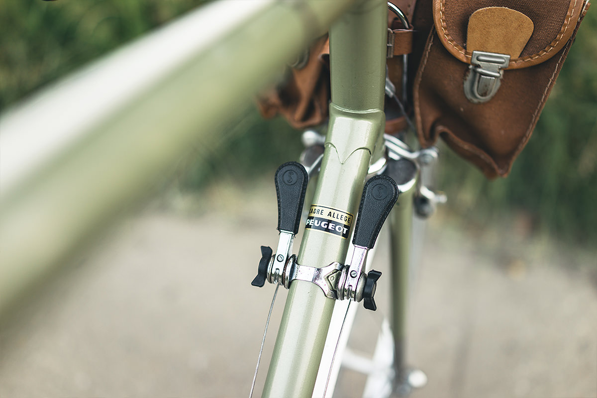 Peugeot advertised the bike back in the day as “For Gentlemen”. It should give the rider the same lightweight feeling of a racing bicycle, yet give it the extra benefits of a randonneur (fenders, lights & front rack). You can see light similarities of the frame with, for example, the legendary Peugeot PX10.