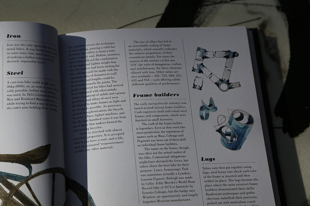 Published by Laurence King, ‘Racing Bicycles’ is a conveniently-sized 210x165mm hardcover tome of 120 pages and 250 illustrations, whose effortless style and fluent discourse barely conceal Higgins’ love for the sport.