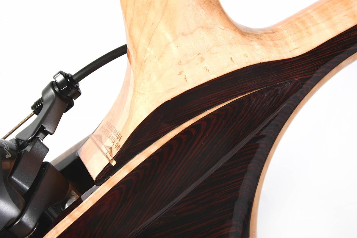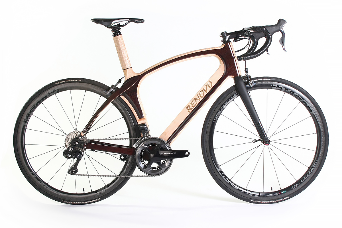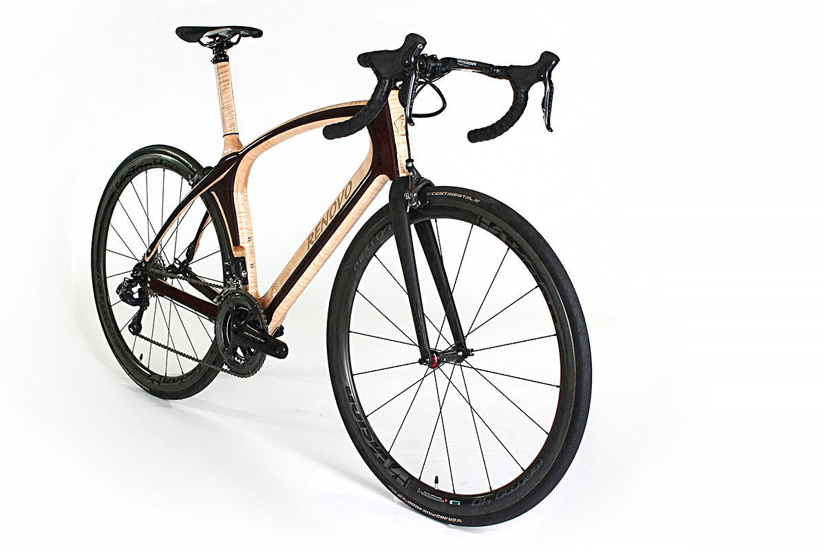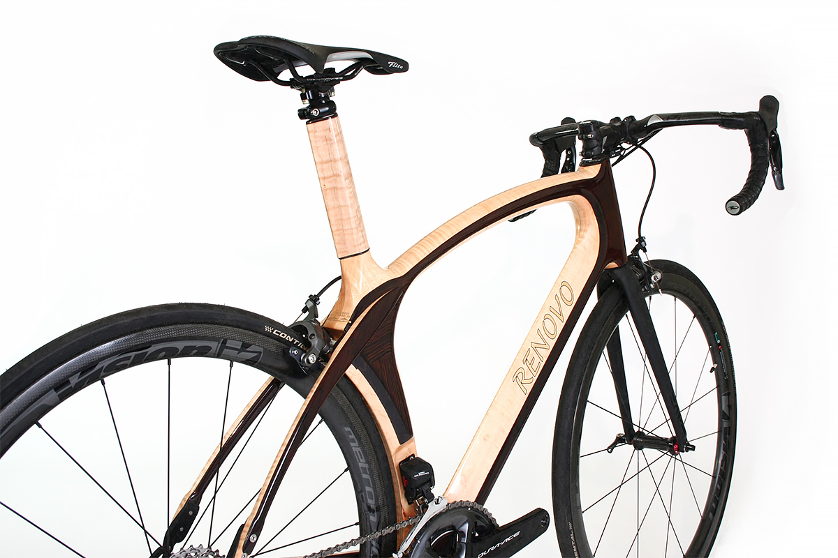 Renovo have been crafting wooden frames since 2007 since they discovered wood absorbs vibration up to four times as much as carbon. The new Aerowood is a hollow frame made from Wenge and Curly Maple, with a thin layer of carbon fiber reinforcing the downtube.
