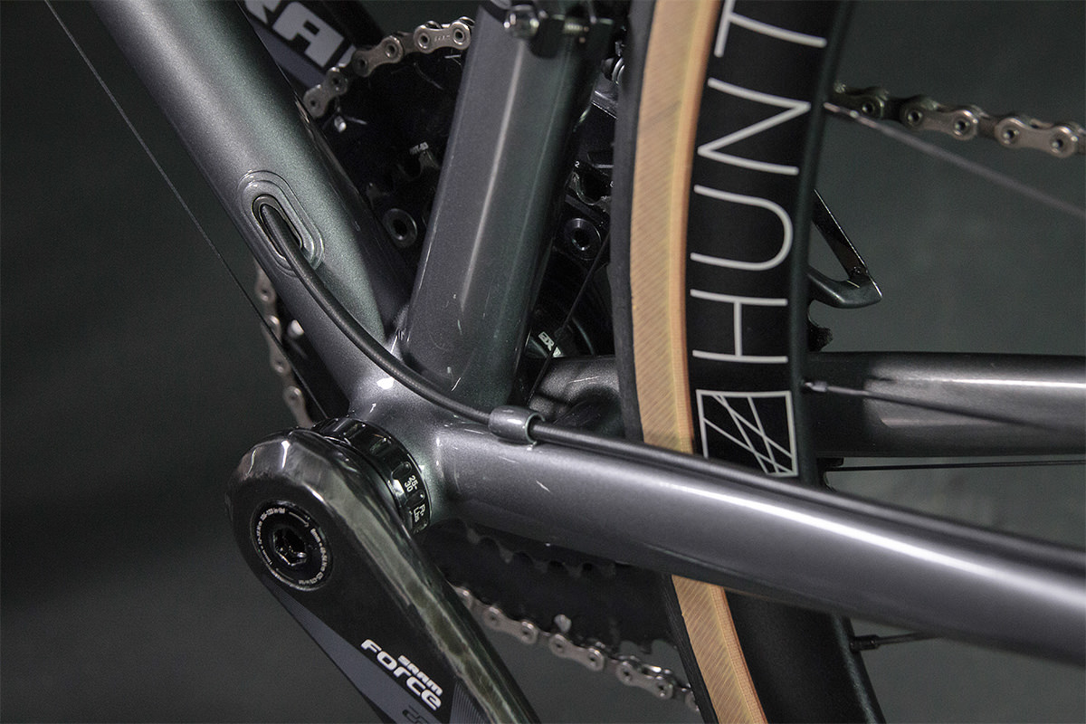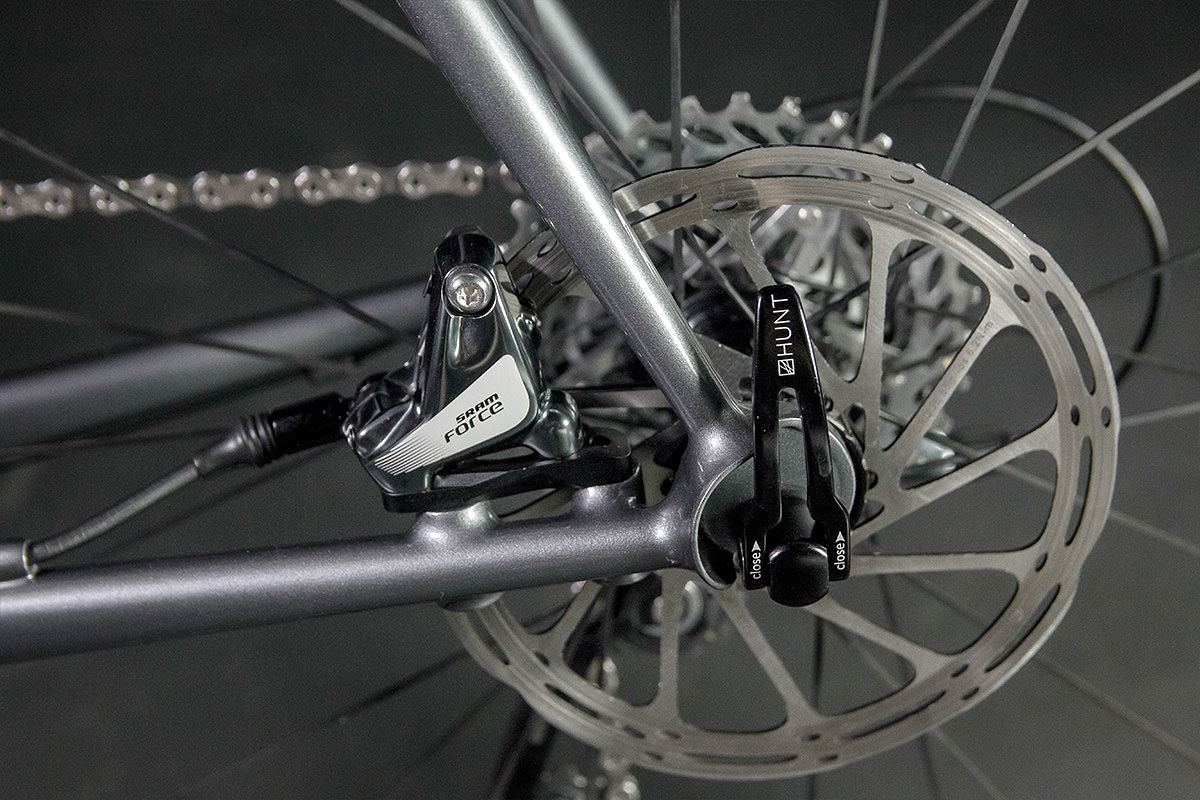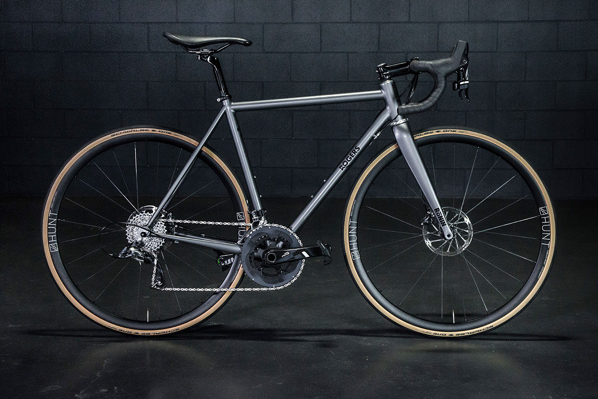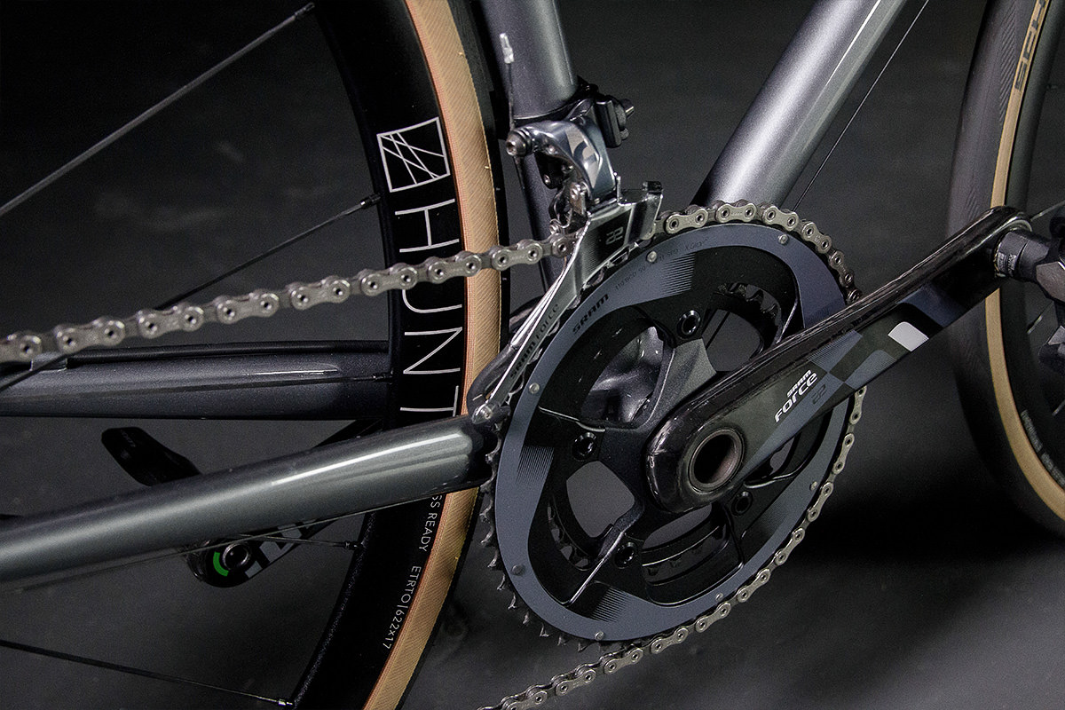 The tubes are mitered and fillet brazed by hand, and are offered as a frameset with forks and a Chris King headset, as a rolling chassis with a Hunt Aero Race wheelset or as a complete bike spec’d with SRAM Force 22, Hunt wheels and a ZIPP Course SL cockpit.
