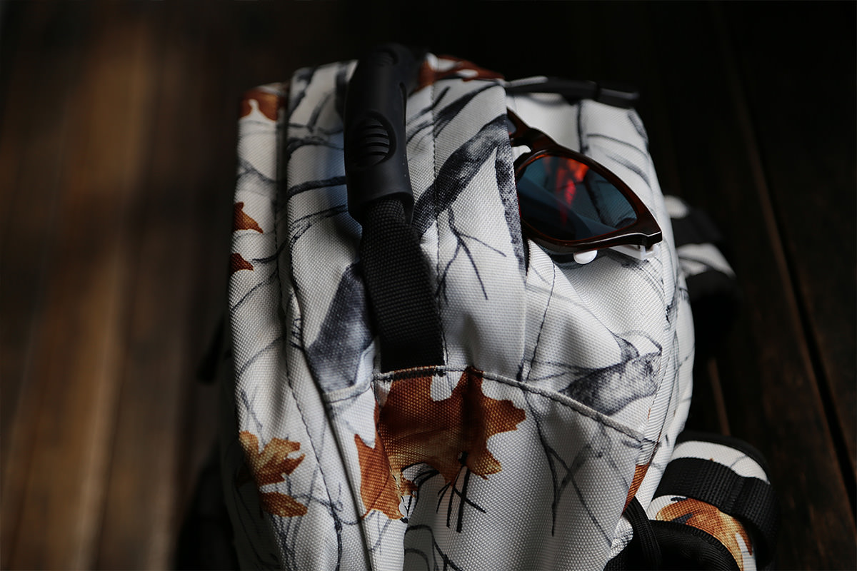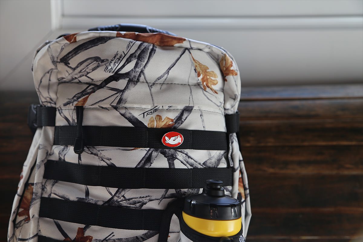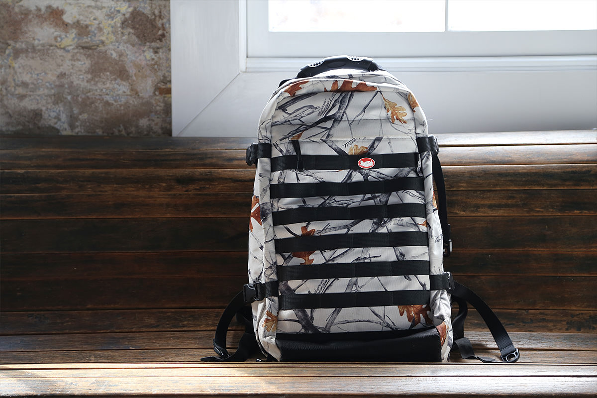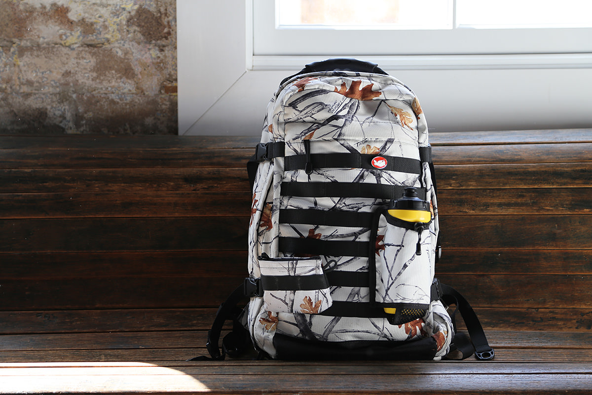 The outer shell is a tough nylon: an incredible range of True Timber camouflage prints (like the featured Snowfall) in 900D Nylon, or 1000D in the ‘plain’ colors — and black. The exterior features six MOLLE strips to which can be attached a multitude of smaller accessory pouches. My Kryptonite Mini D-Lock is usually threaded through them.