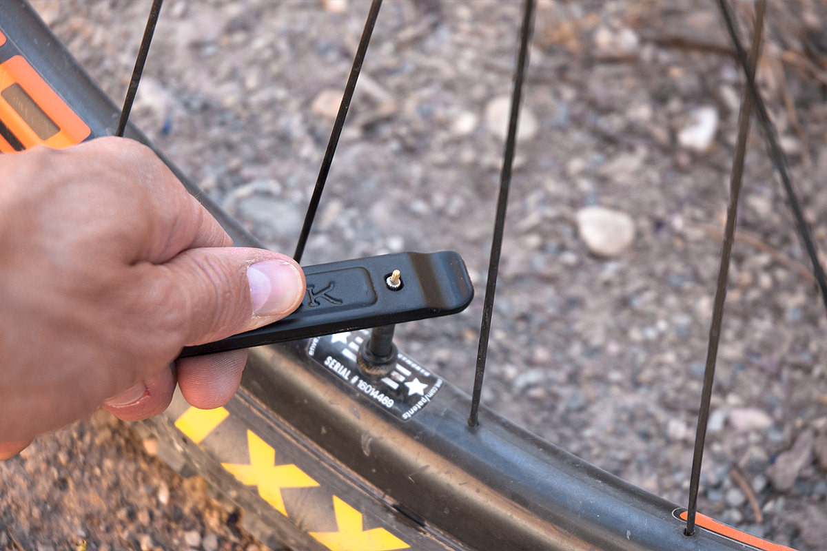 Traditional tire levers lack the ability to remove a valve core, and the easiest way to install sealant is through the valve. “I was tired of looking for a tool to remove the valve core of my tubeless tires everytime I wanted to add sealant.