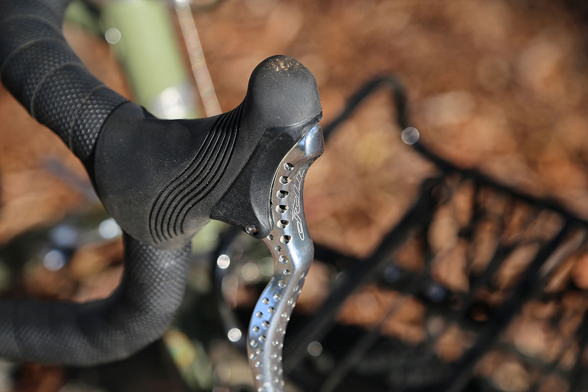 The standard handlebars are Nitto Dirt Drop RM-013 bars and although I’ve handled more modern-shaped bars, these are perfectly comfortable with a moderate outward sweep. I initially ran Brooks’ faux-leather tape, but swapped it for the Profile Design’s cushioned Drive bar tape the Stanforth was shipped with and haven’t looked back.