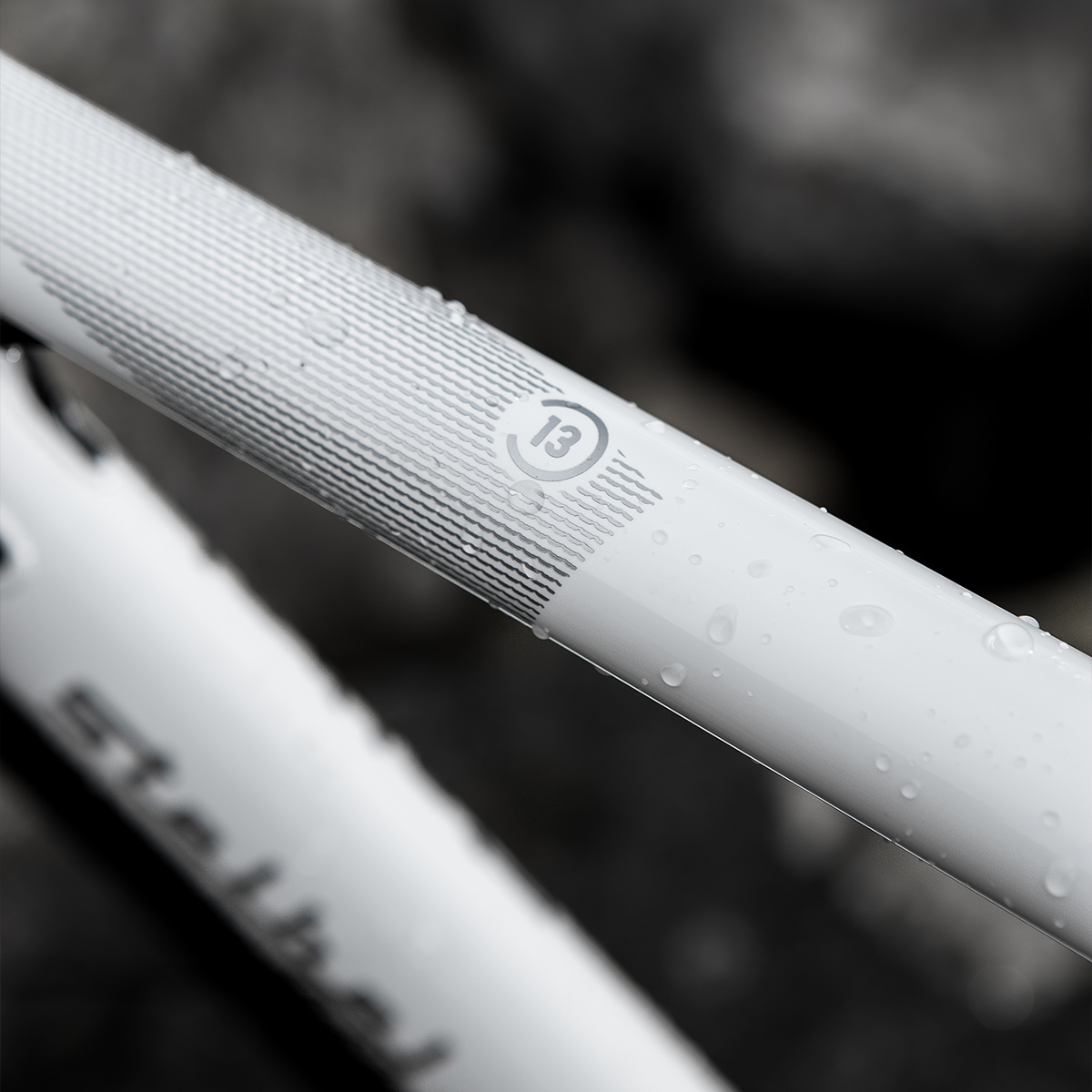 The bikes featured here were painted in the non-stock colors of white and black, and modified with custom graphics on the top tube. The weather might have been rubbish, but it’s such conditions that the C13 was designed for.