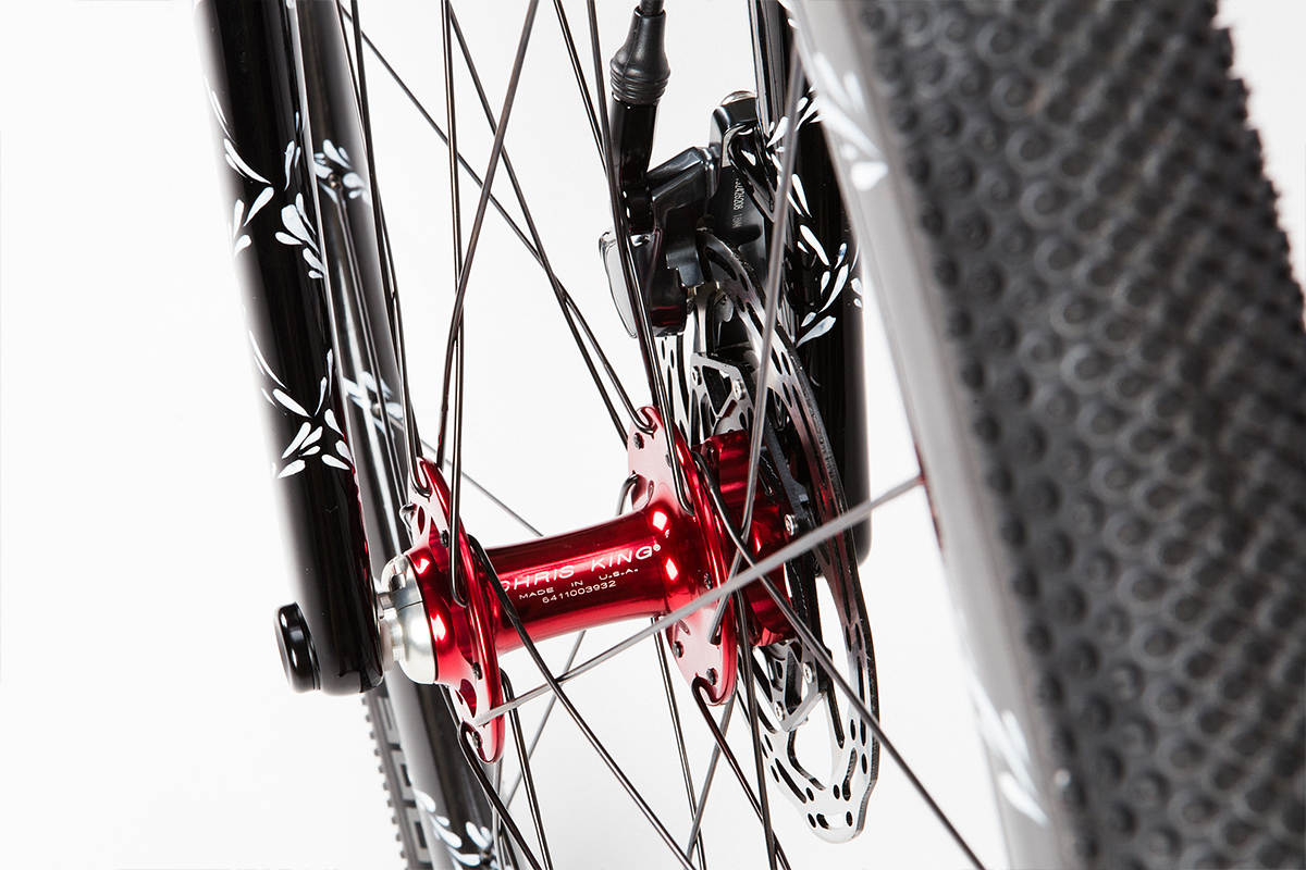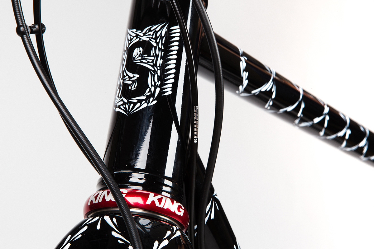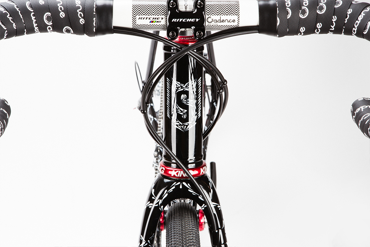 Chris King supplied contrasting red hubs and headset, and it wouldn’t be a complete DKlein bike without a Cadence Collection/Ritchey cockpit now, would it? All in all, it’s another work of art in Dustin’s unmistakeable decorative style.