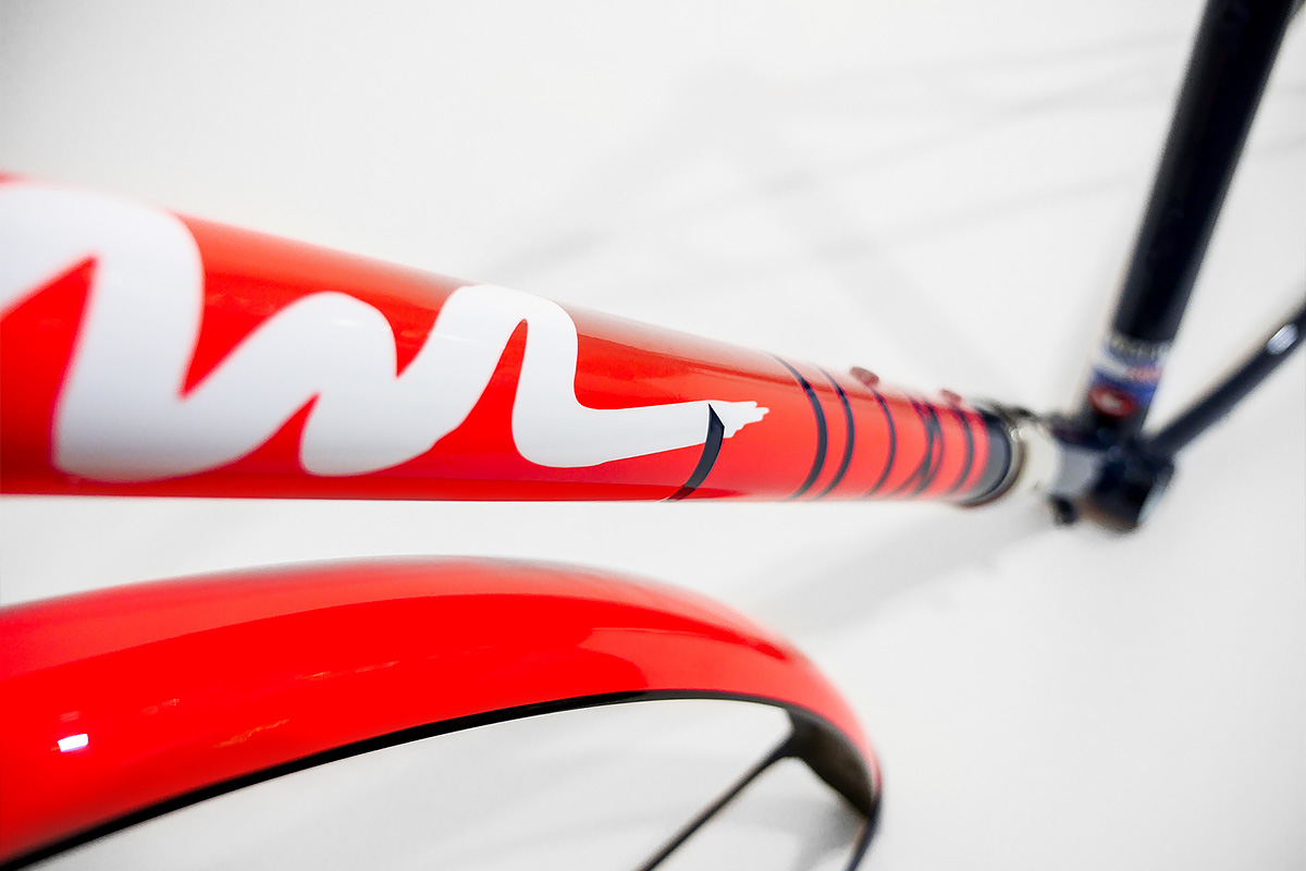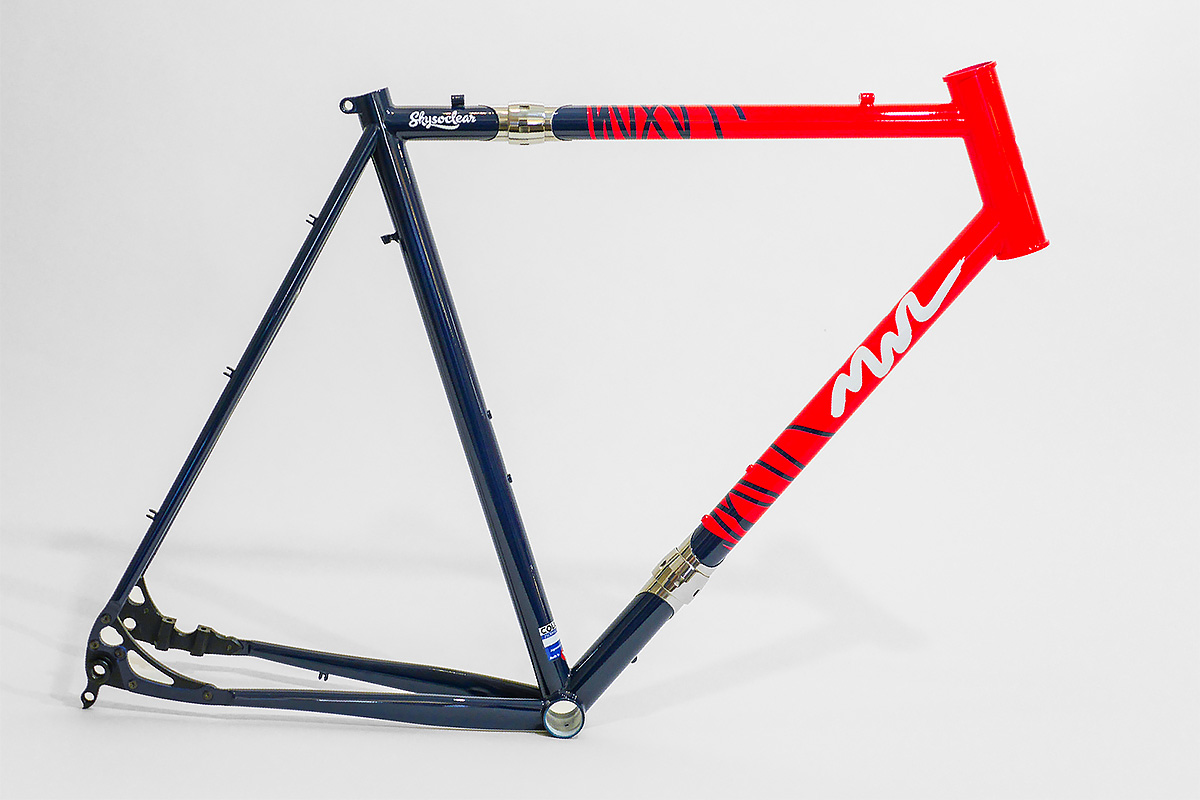 Ross is a UX designer who works with big bike retailers and brands. Because his bike is his calling card, Ross wanted something with a memorable design that could travel easily and would take him over all kinds of terrain. To meet this brief, MWL built him a full-custom frame with a one-off paint scheme, ENVE gravel fork, buffed S&S couplers and plenty of space for rubber.
