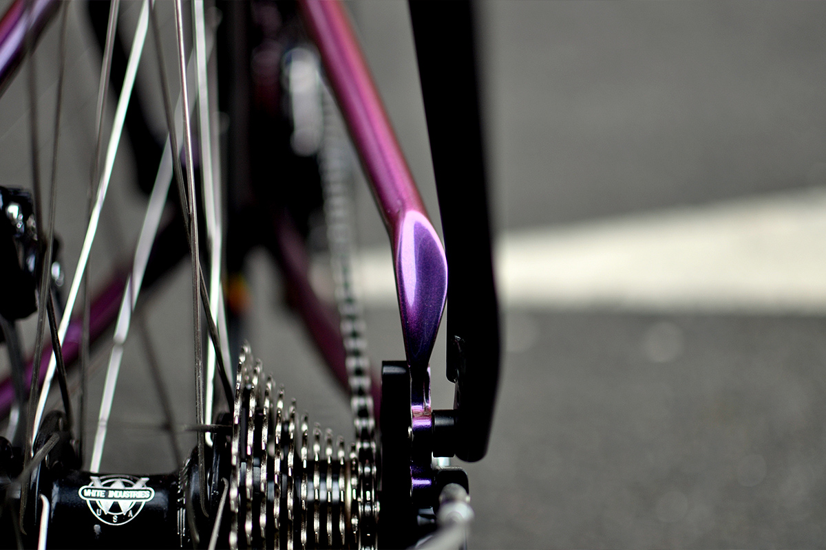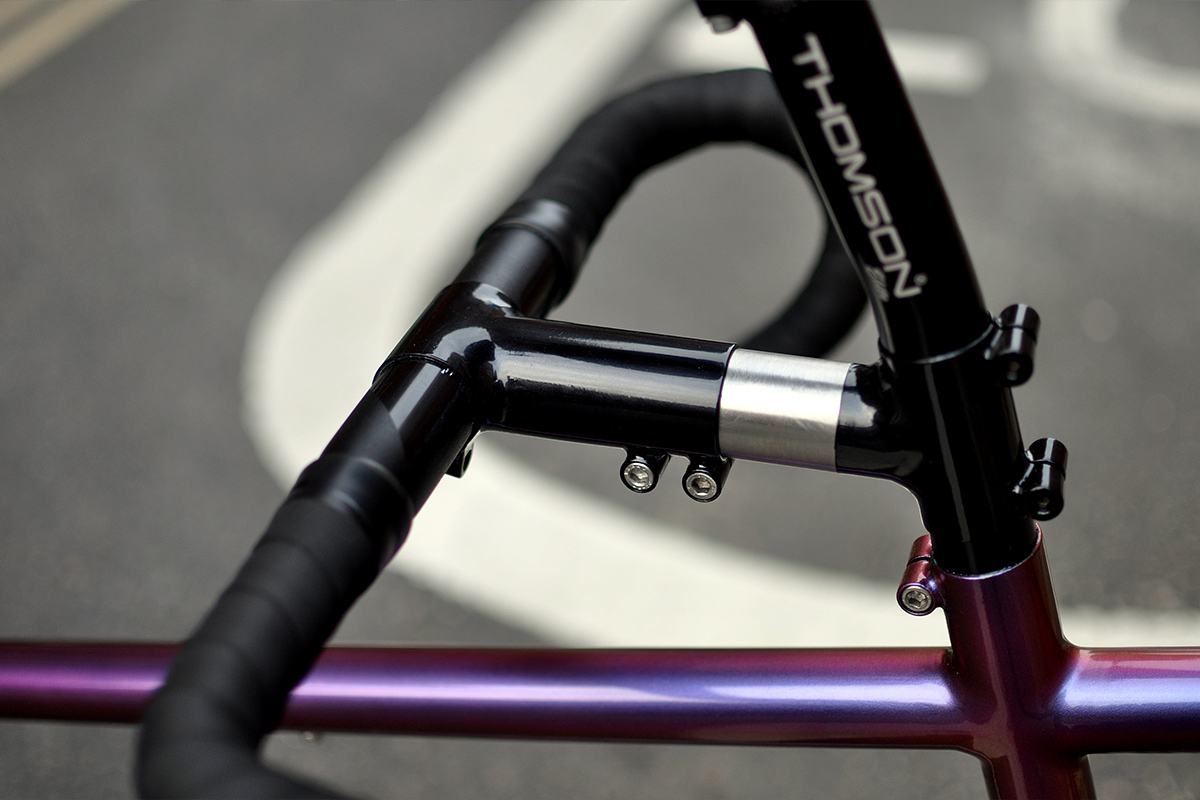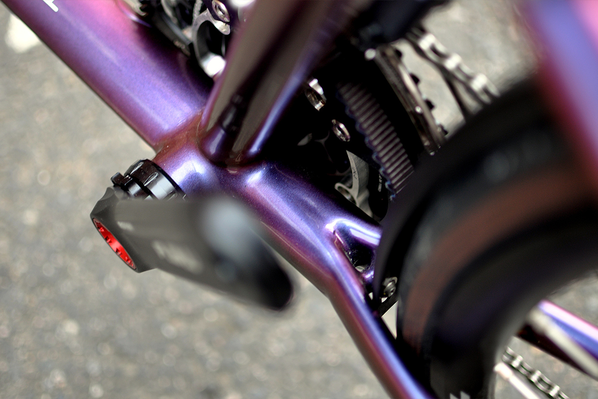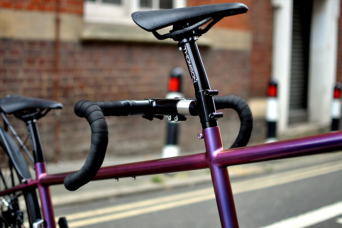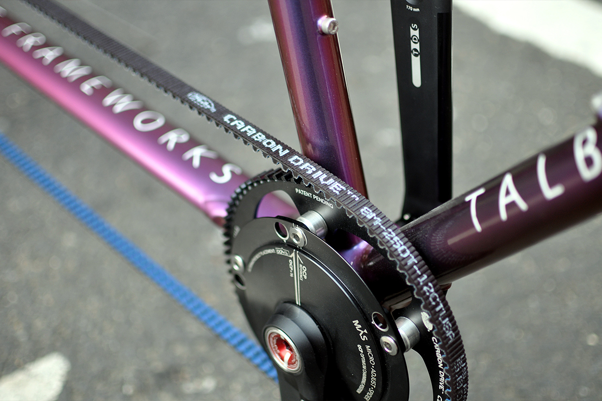 Matthew used a tandem-specific jig for the job to fillet braze the main frame, but he still had to build a lot of custom tooling for specific tasks. Even the drivetrain is out-of-the-ordinary, a combination of Di2, Gates Carbon belt and custom Rotor chainring spiders.