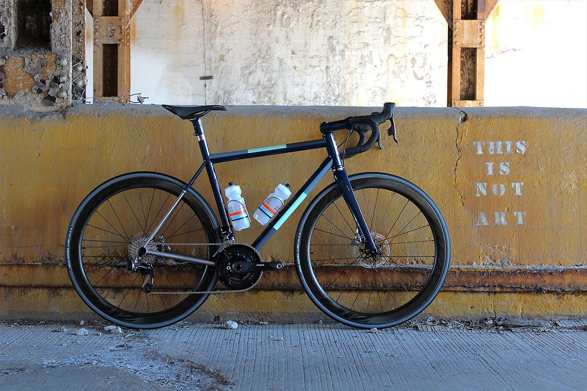 SRAM got in contact with Velosmith Bicycle Studio, located just north of Chicago in Wilmette, to assemble a bike that epitomized the direction of the market over the last year. In short, the first task this ‘road’ bike will tackle is a 100k mixed terrain event.