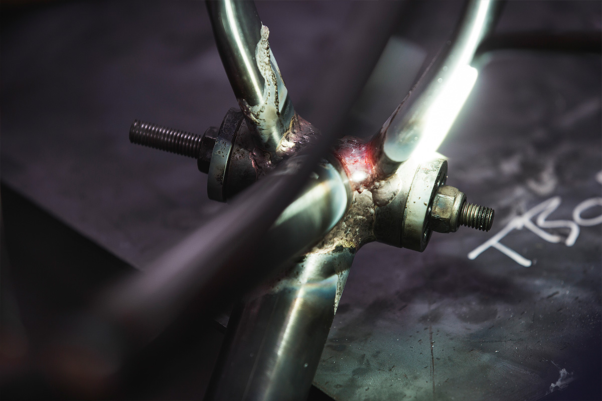 “At The Bicycle Academy we use a different technique, where we create the volume and form of the fillets in one slower pass, whetting the puddle forwards into the seam of the joint as we go to produce either a smooth fillet, for carving, or the ‘stacked coin’ look for those who want to leave their fillets raw.