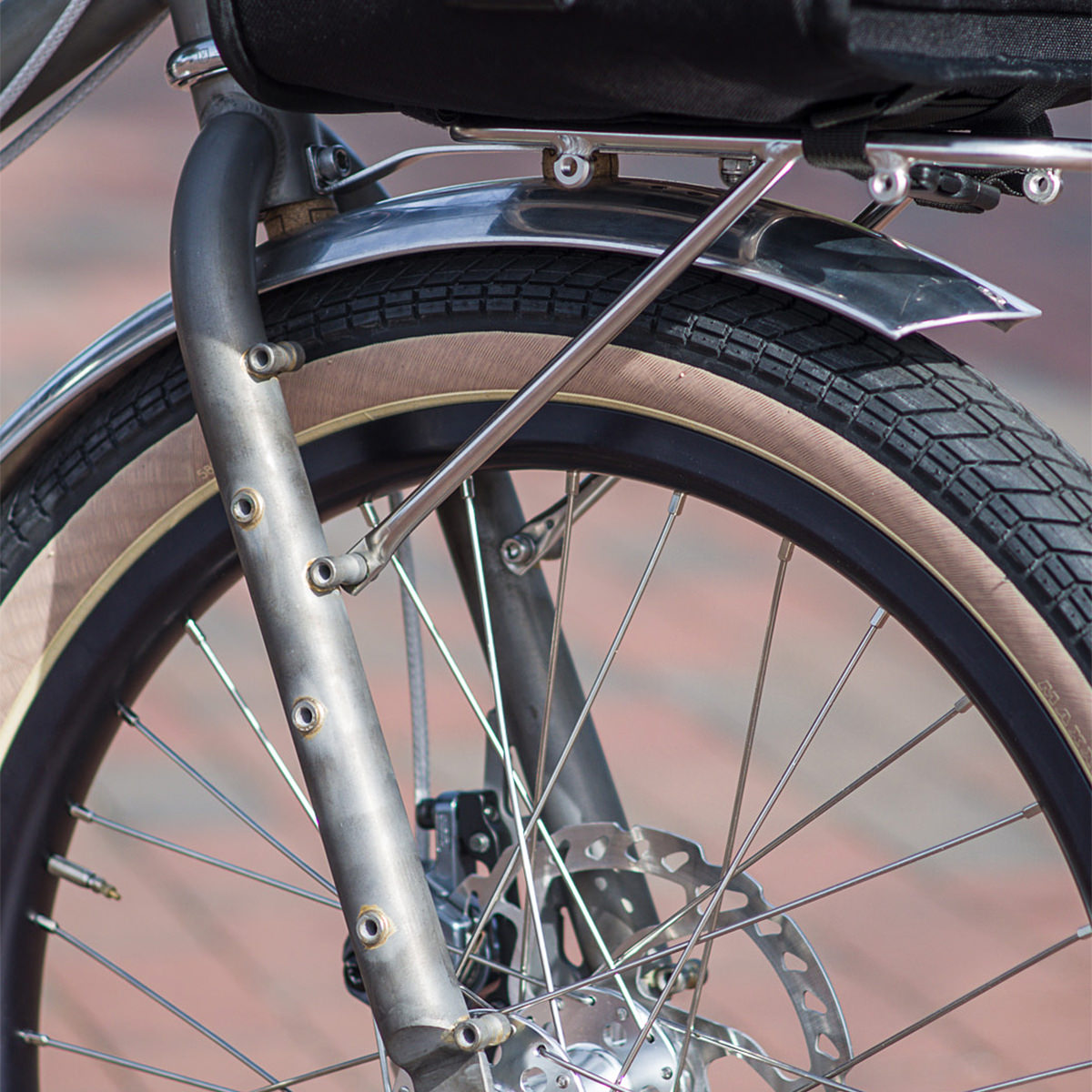 Mini velos’ rideability is no secret. It’s easy enough to achieve the same geometry of a standard-sized bike using smaller wheels, which opens up a whole new world for the apartment-dwelling commuter, Rinko tourer, or inner city multi-use vehicle.